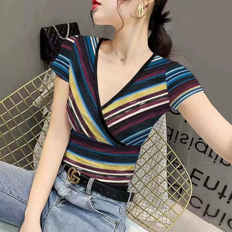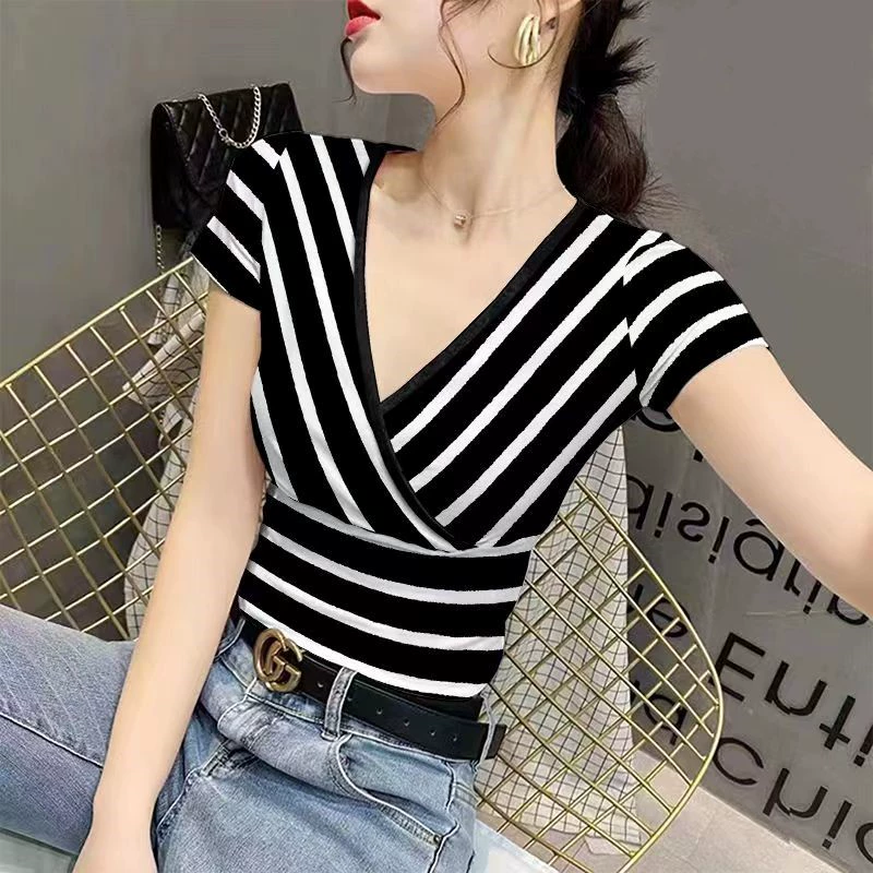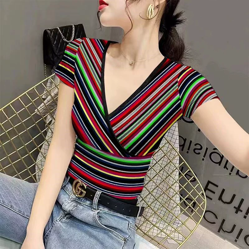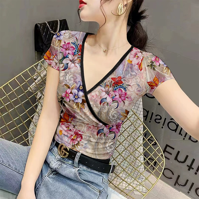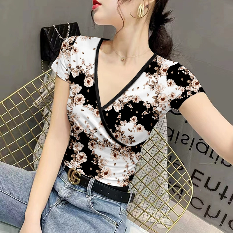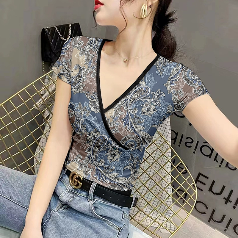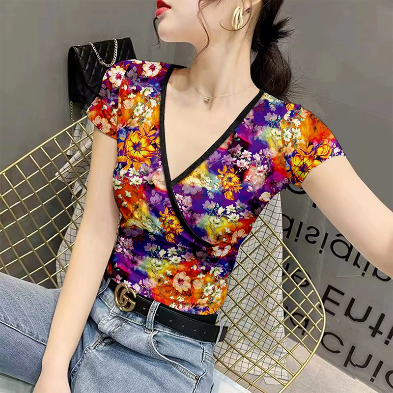 | nameOriginal | v-neck summer fashion slim fit ice silk printed women's t-shirt |