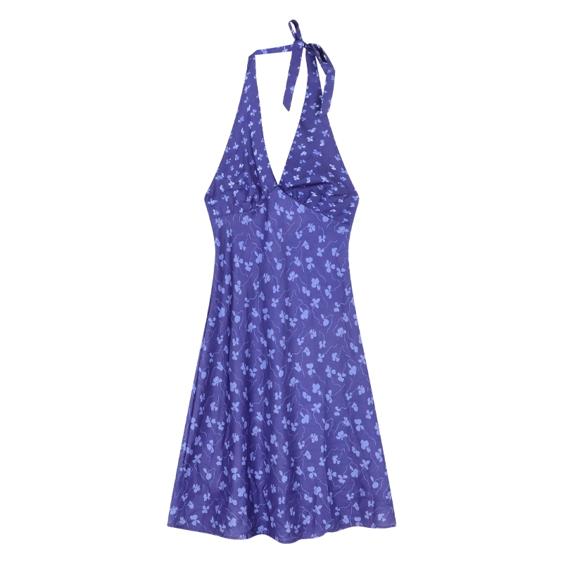 V-neck summer purple dress holiday style halter neck