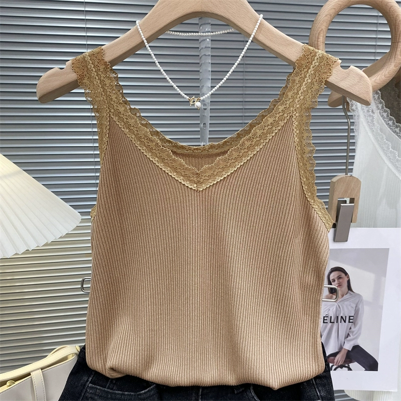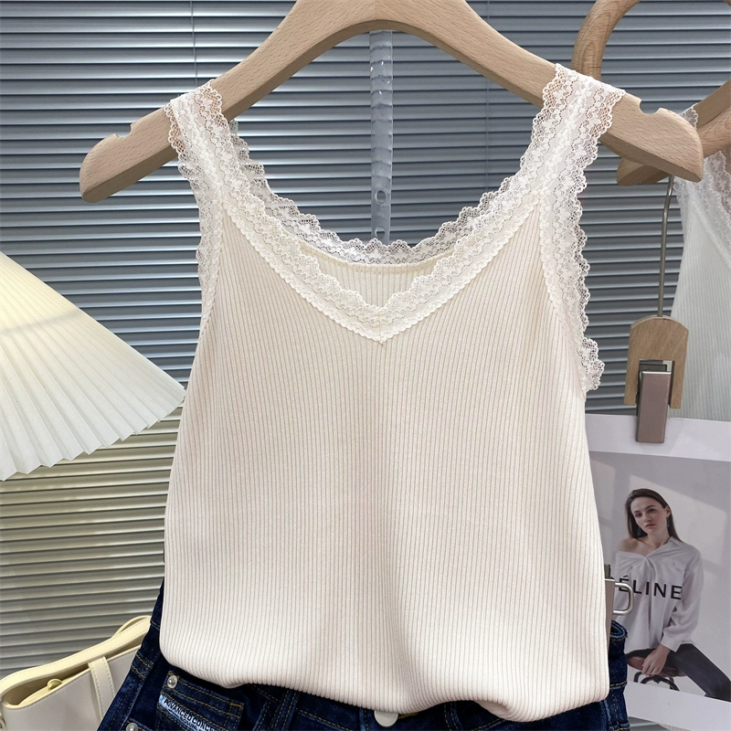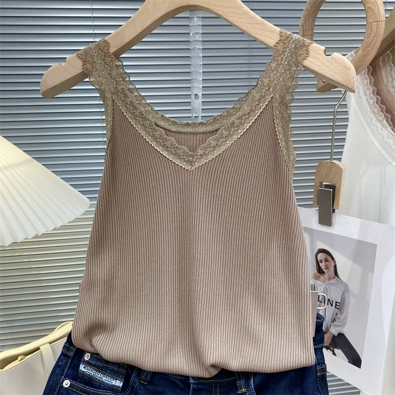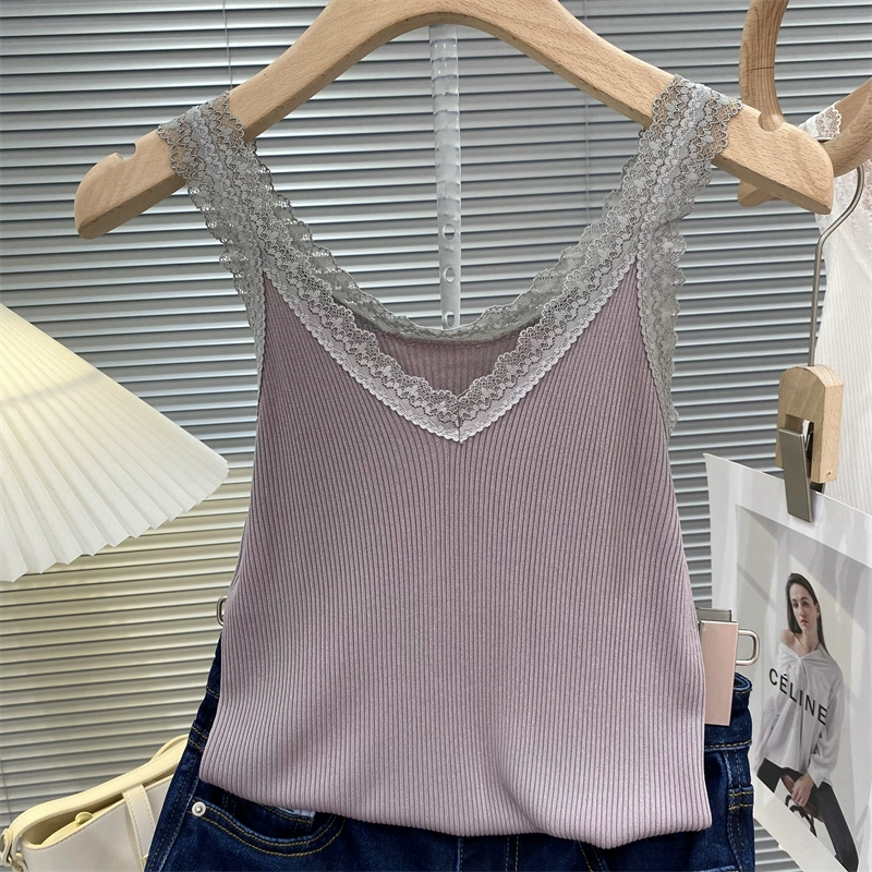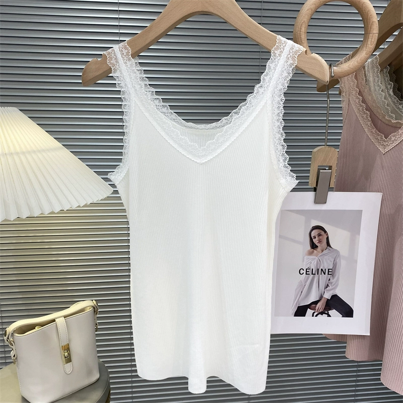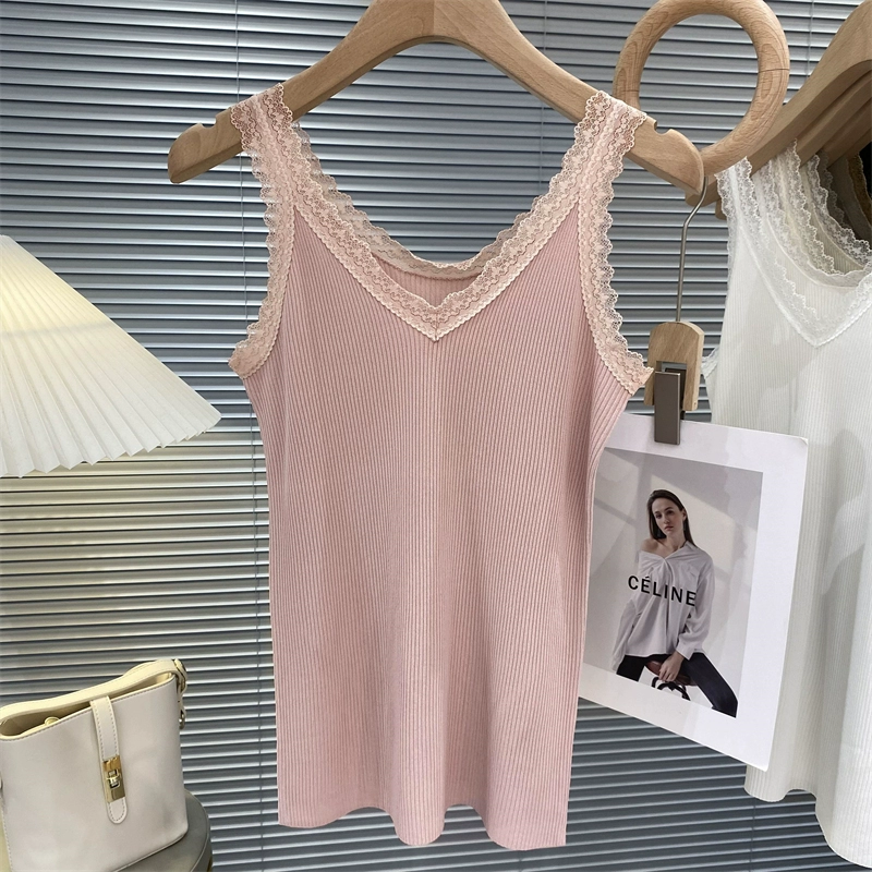 V-neck summer reversible wear with slim bottoming lace