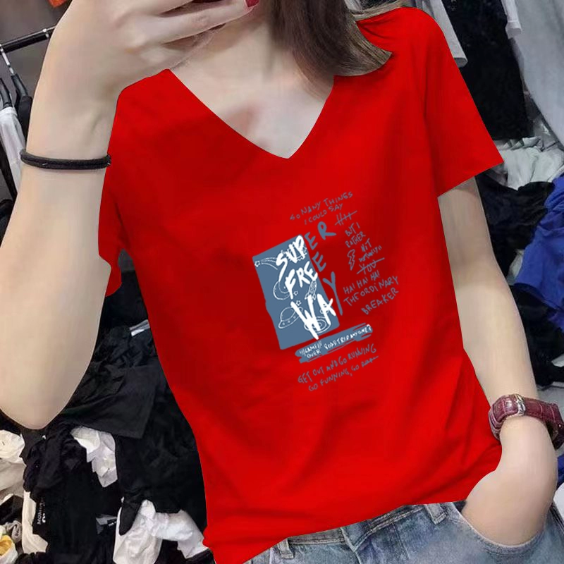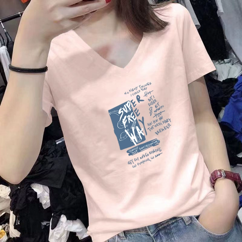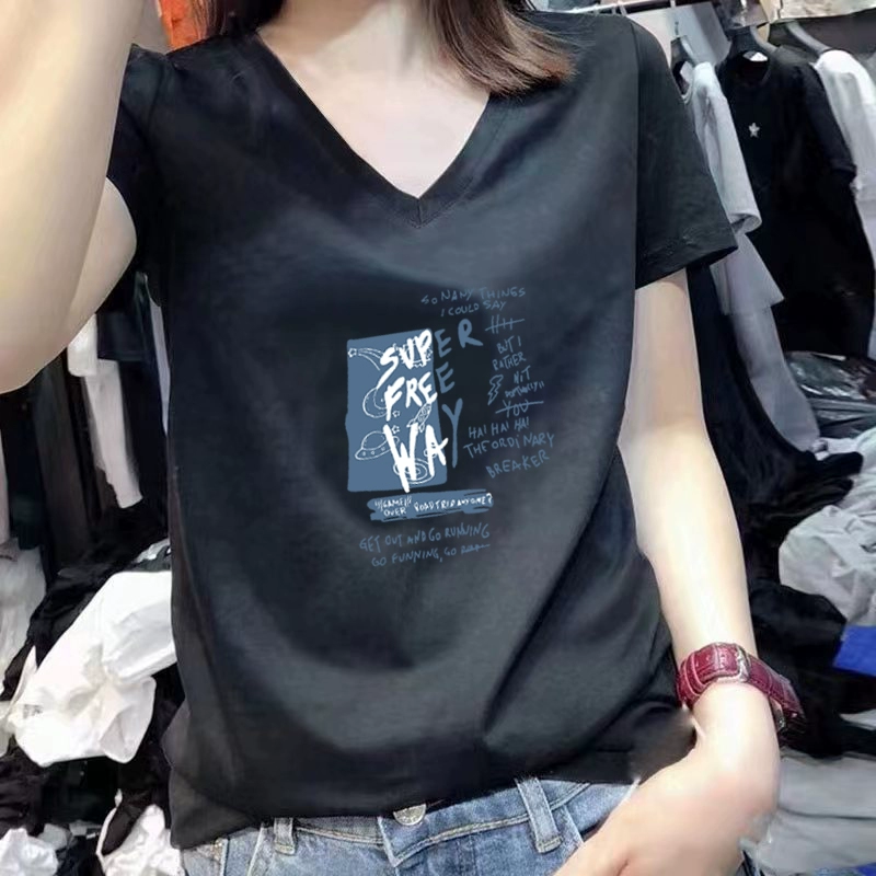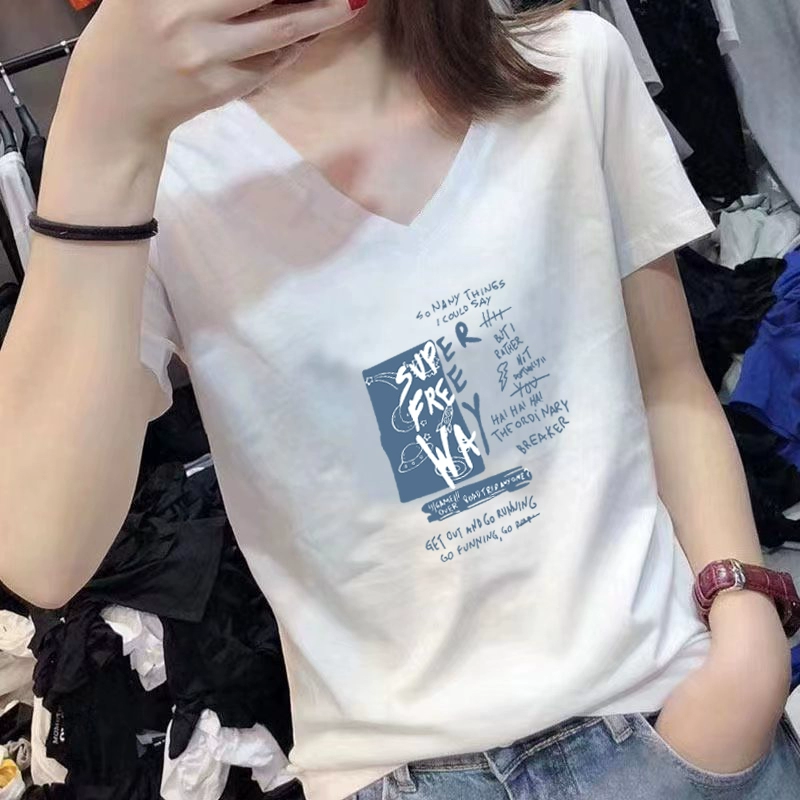 | nameOriginal | V-neck summer short-sleeved white cotton slim-fitting top t-shirt |