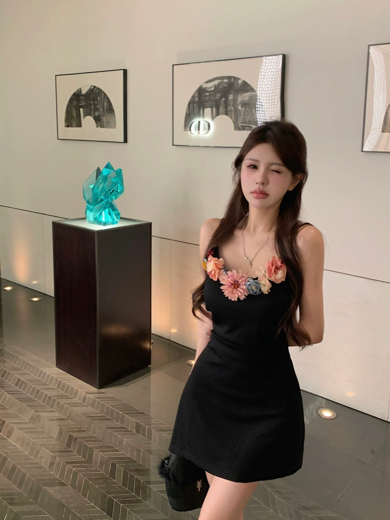 | nameOriginal | V-neck suspender dress summer pure desire fishbone flowers |