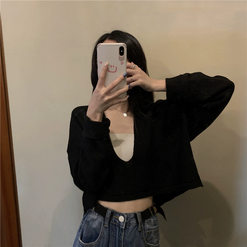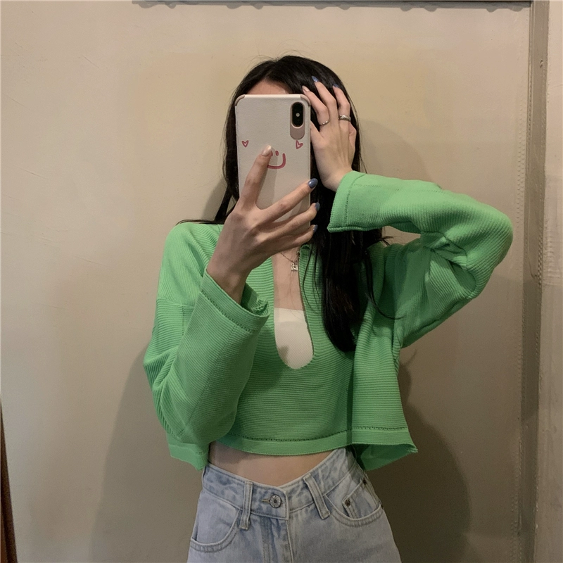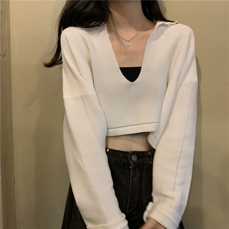 | nameOriginal | V-neck sweater for women spring and autumn 2024 new Korean style gentle little white sweater short bm style top |