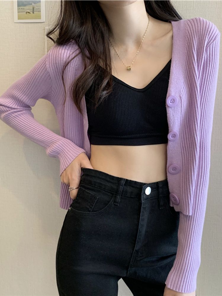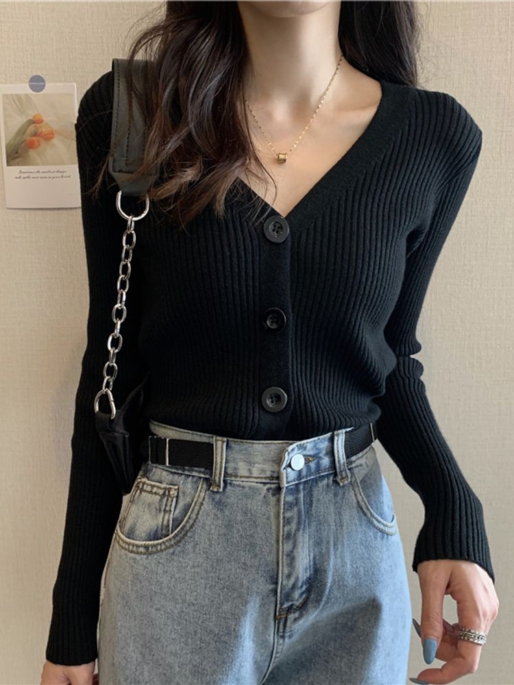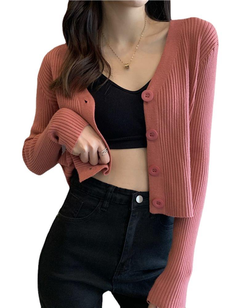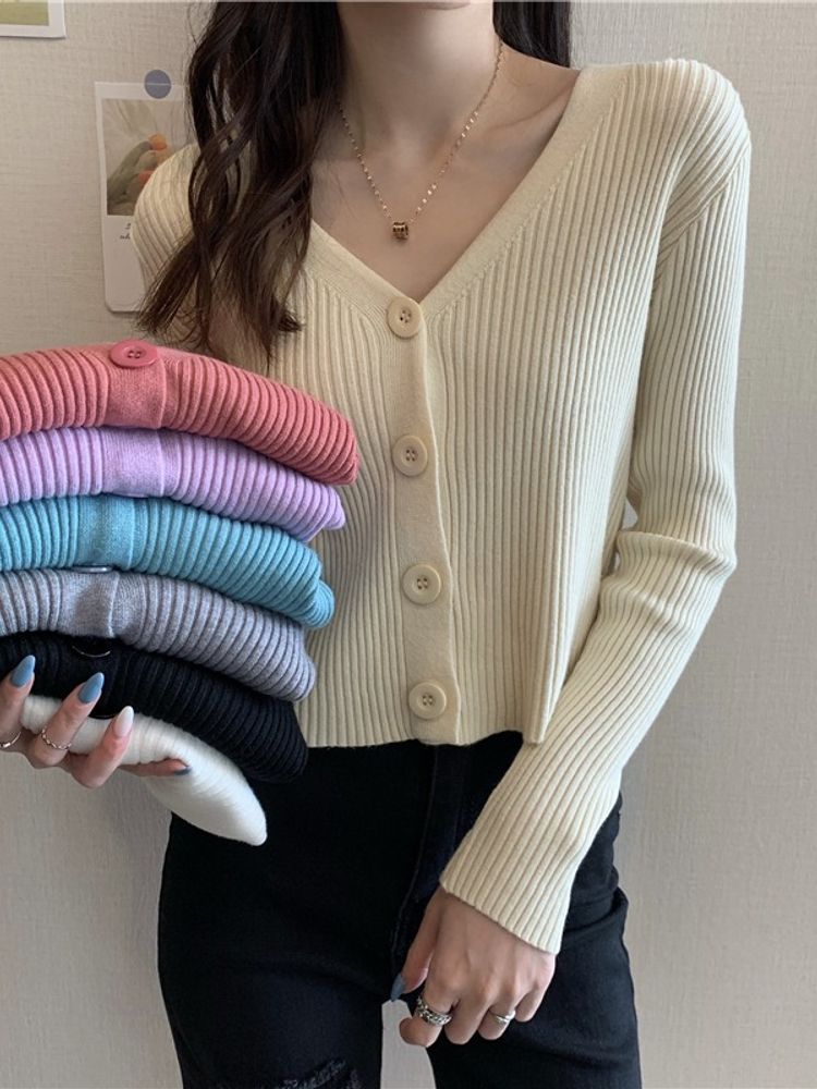| nameOriginal | V-neck sweater women's spring wear wear 2024 new short lazy style sweater cardigan long sleeve coat top |