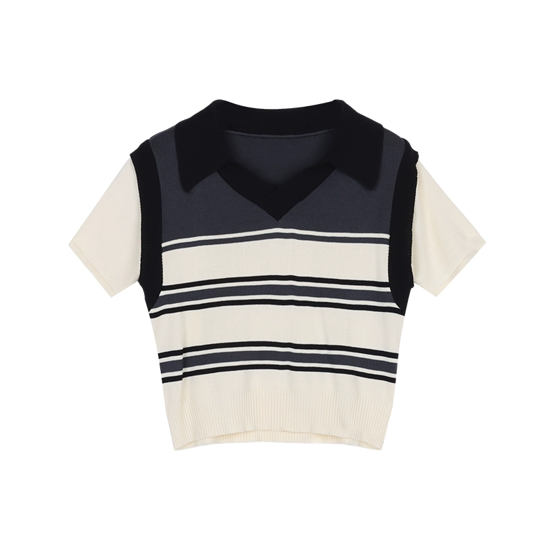 | nameOriginal | V-neck T-shirt retro contrasting slim-fitting sweater fake two pieces |