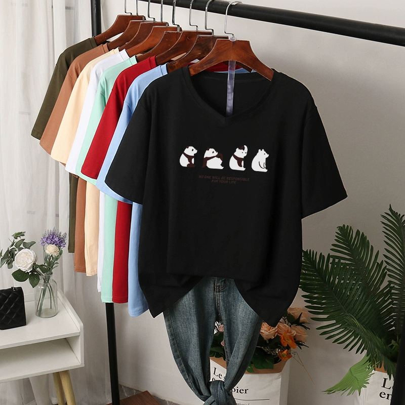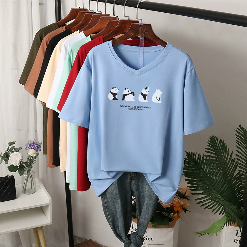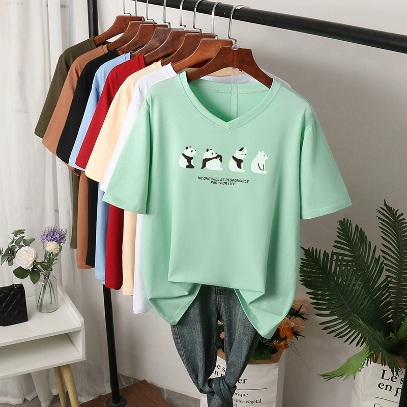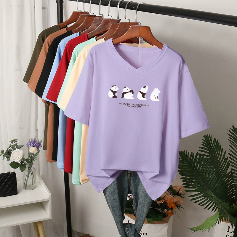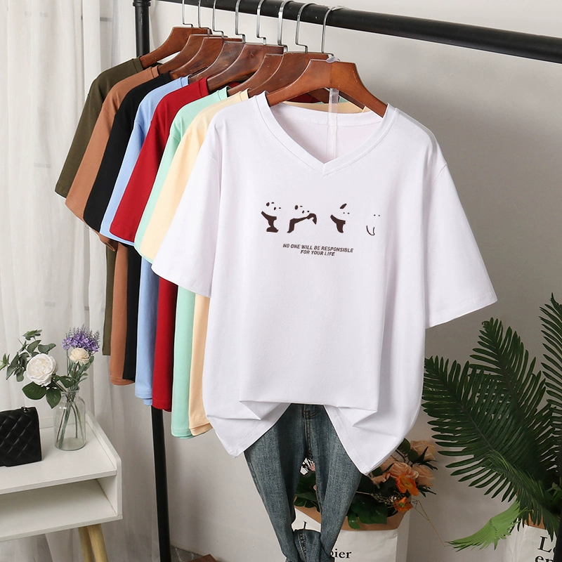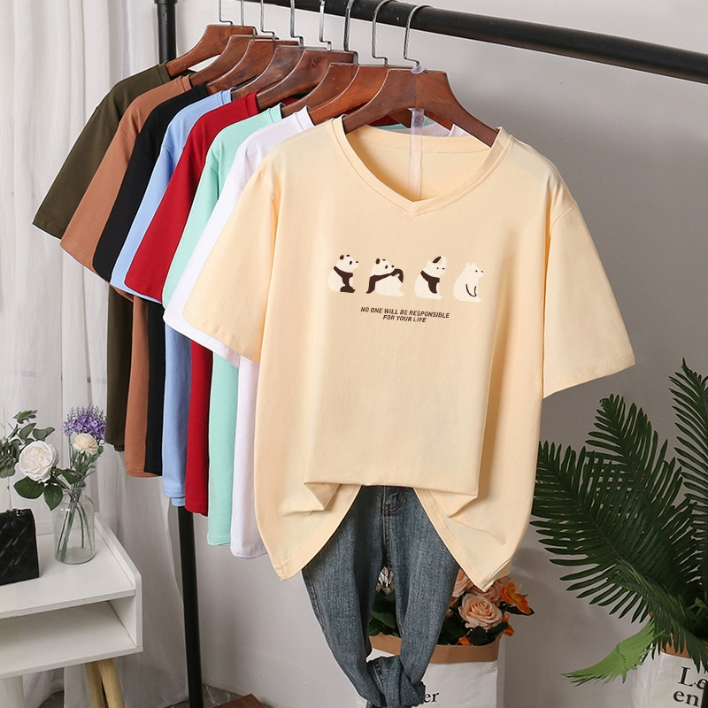 | nameOriginal | V-neck t-shirt women's large size pure cotton summer wear fat mm loose slimming right shoulder top short-sleeved 200 pounds belly-covering T-shirt |