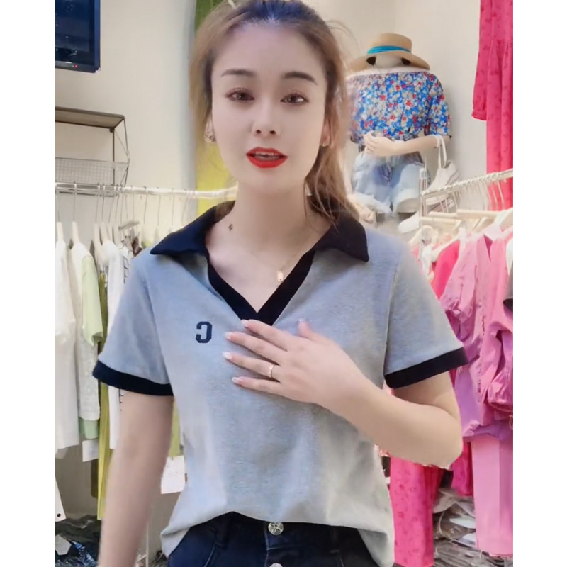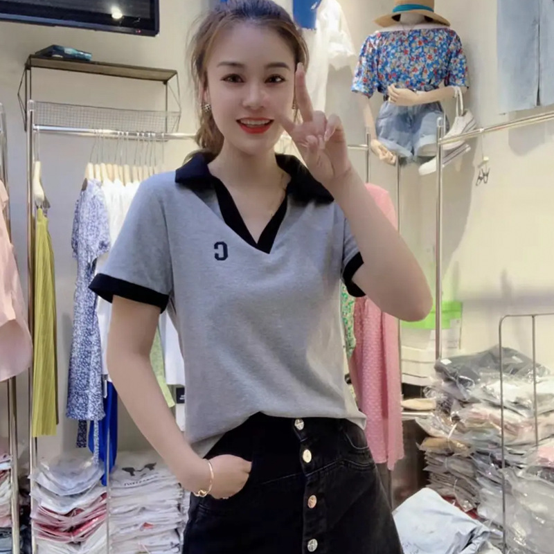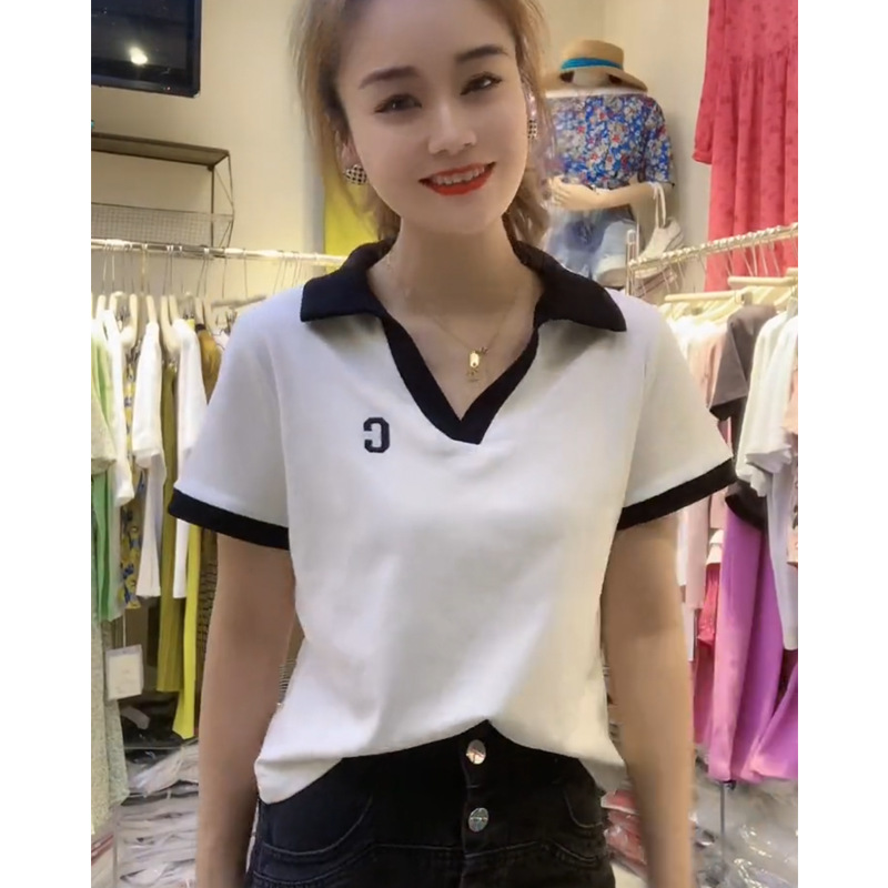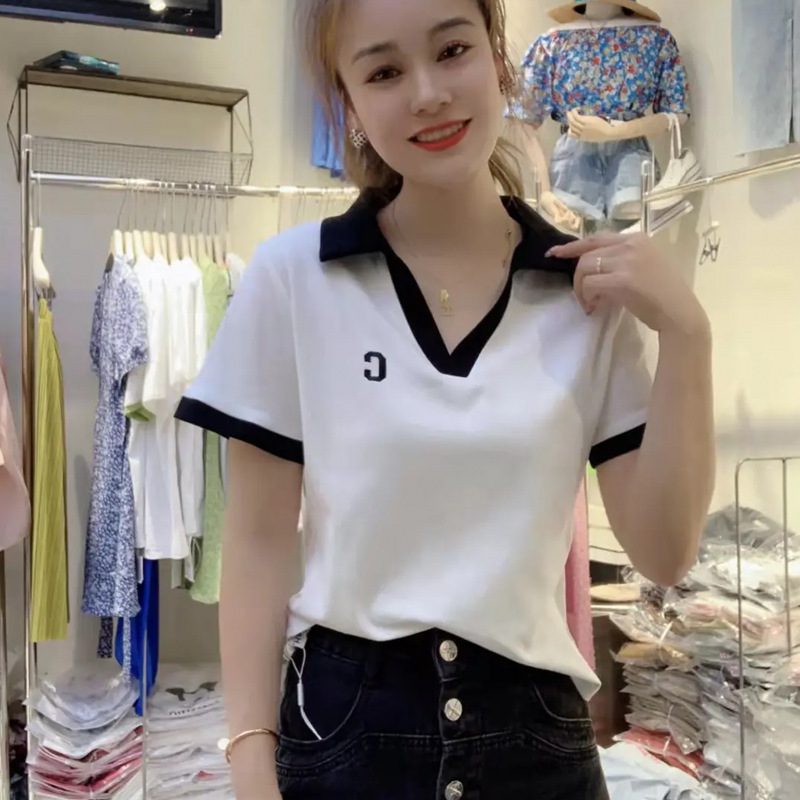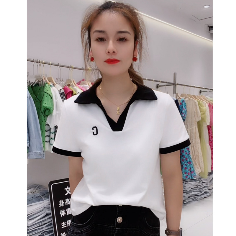 | nameOriginal | V-neck T-shirt Women's Shoulder Short-sleeved Ins Trendy Summer 2024 New Large Size Cotton Design Sense Short Top Polo Shirt |