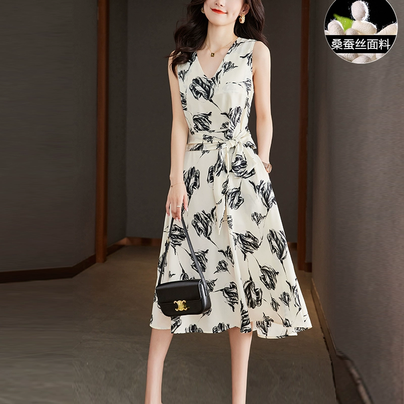 | nameOriginal | V-neck temperament printed summer sleeveless silk dress |