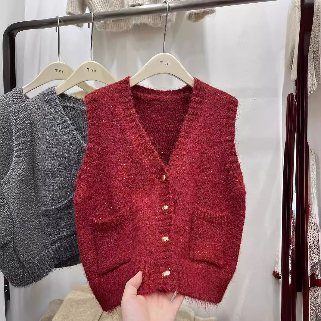 | nameOriginal | V-Neck Vintage Short Sequin Knitted Vest Sweater Cardigan Vest Women's Loose Outer Wear Stacked Waistcoat Trendy |