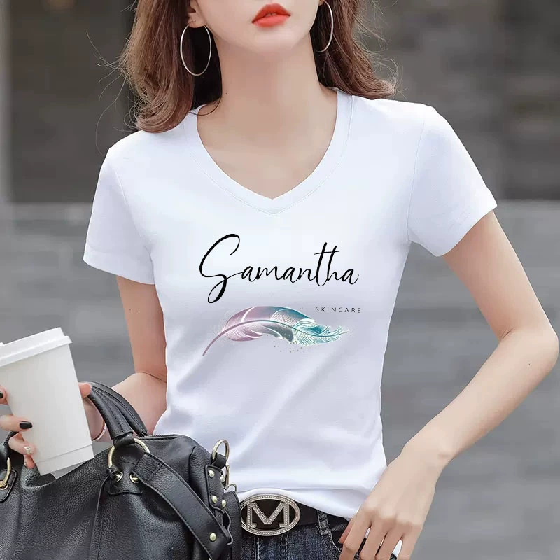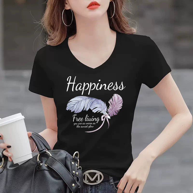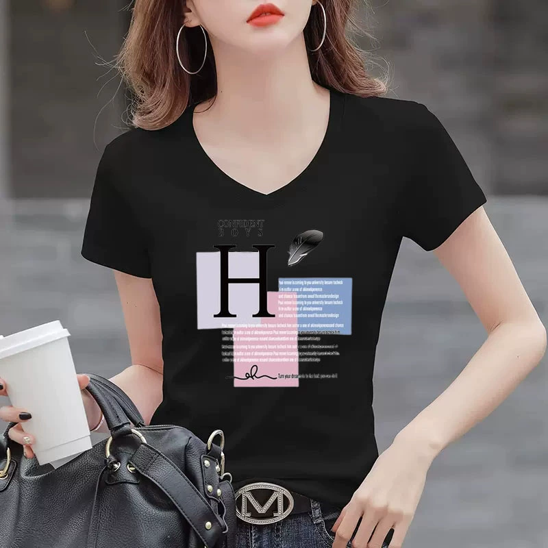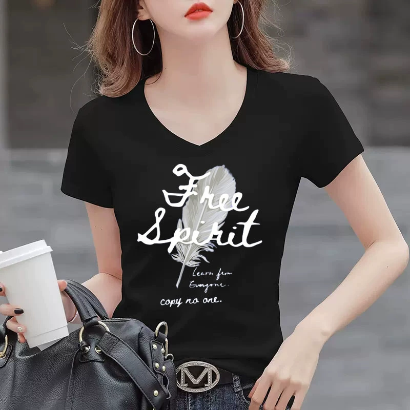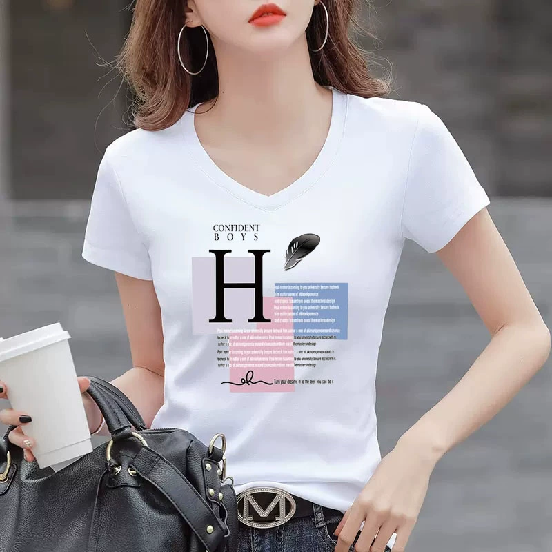 | nameOriginal | V-neck white t-shirt women's short-sleeved pure cotton 2024 summer new slim fit T-shirt Korean style fashionable top |