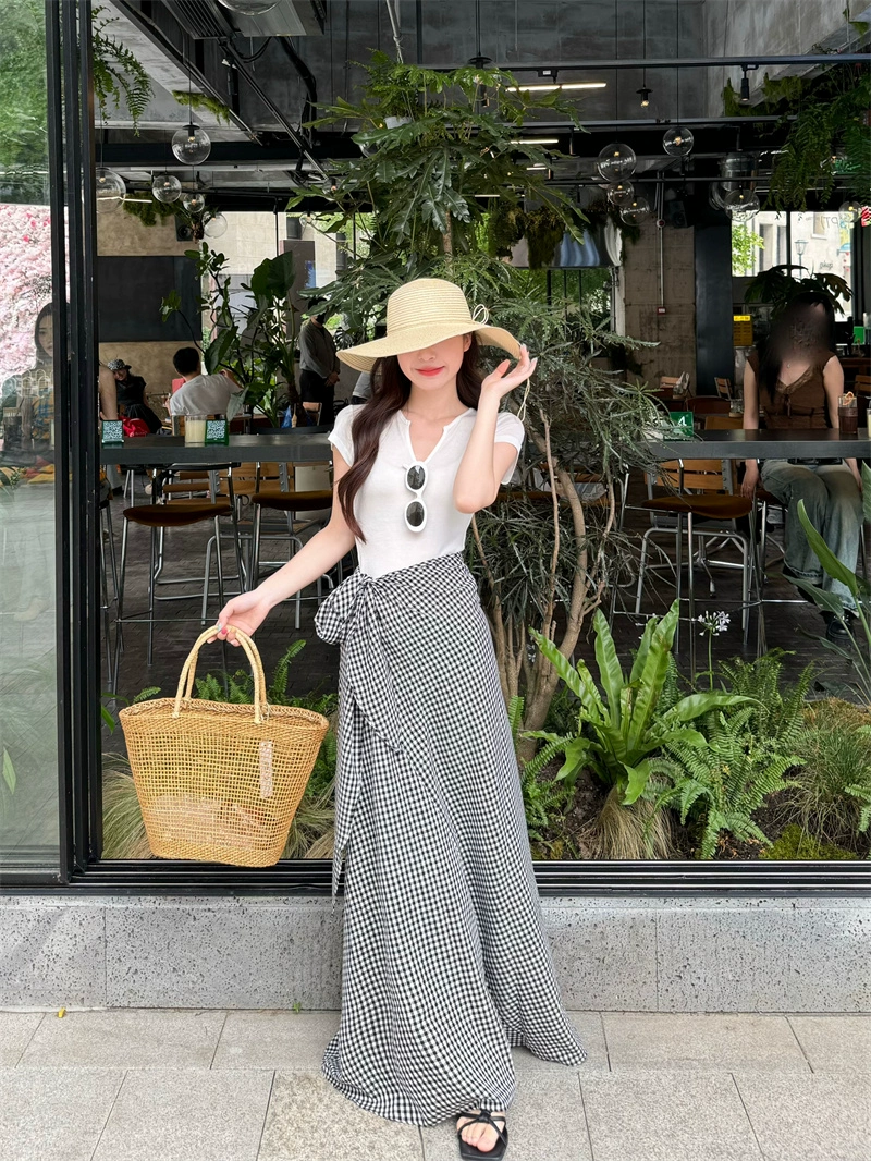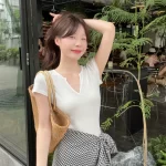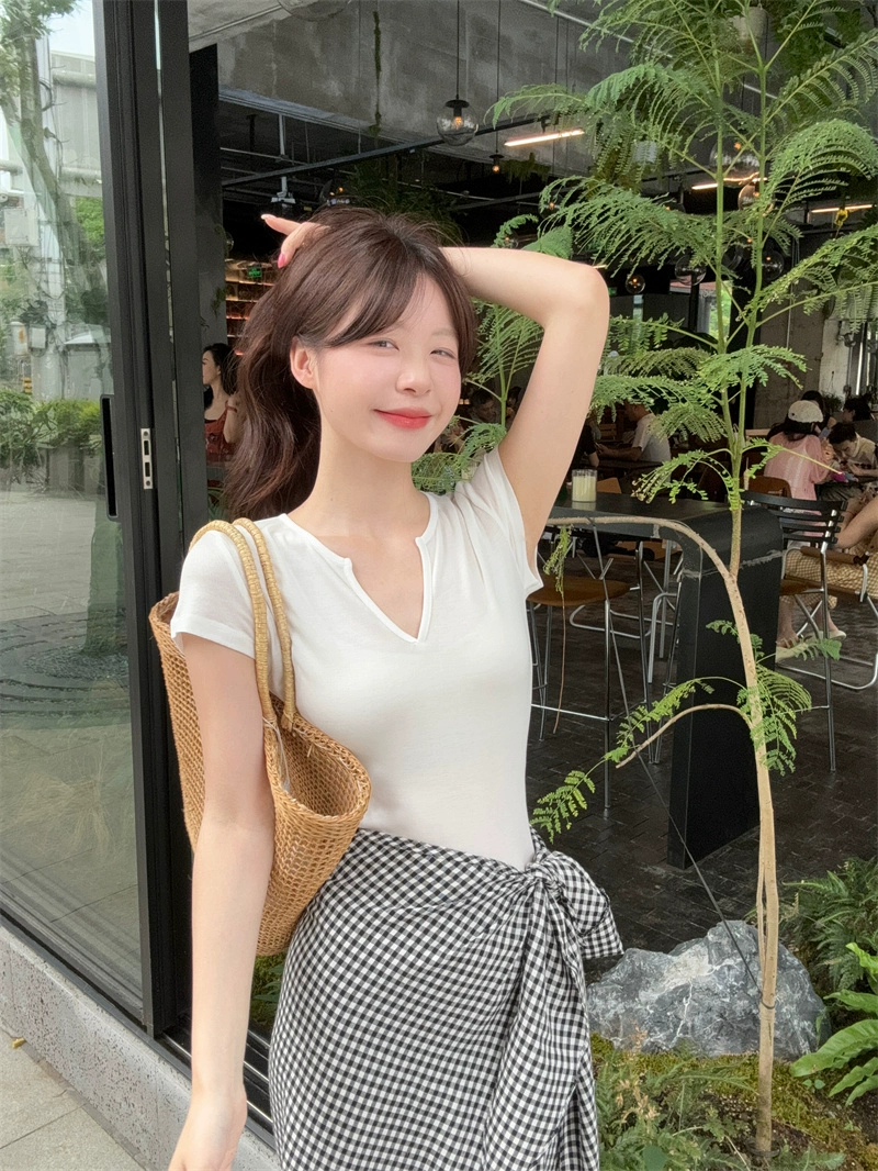 V-neck women’s summer irregular tie two-piece T-shirt