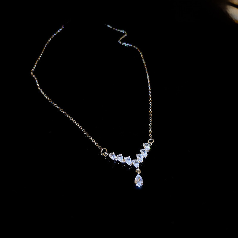 | nameOriginal | V-shaped water drop temperament necklace niche luxury neck chain commuter clavicle chain female inlaid zircon wheat bracelet wholesale |