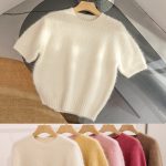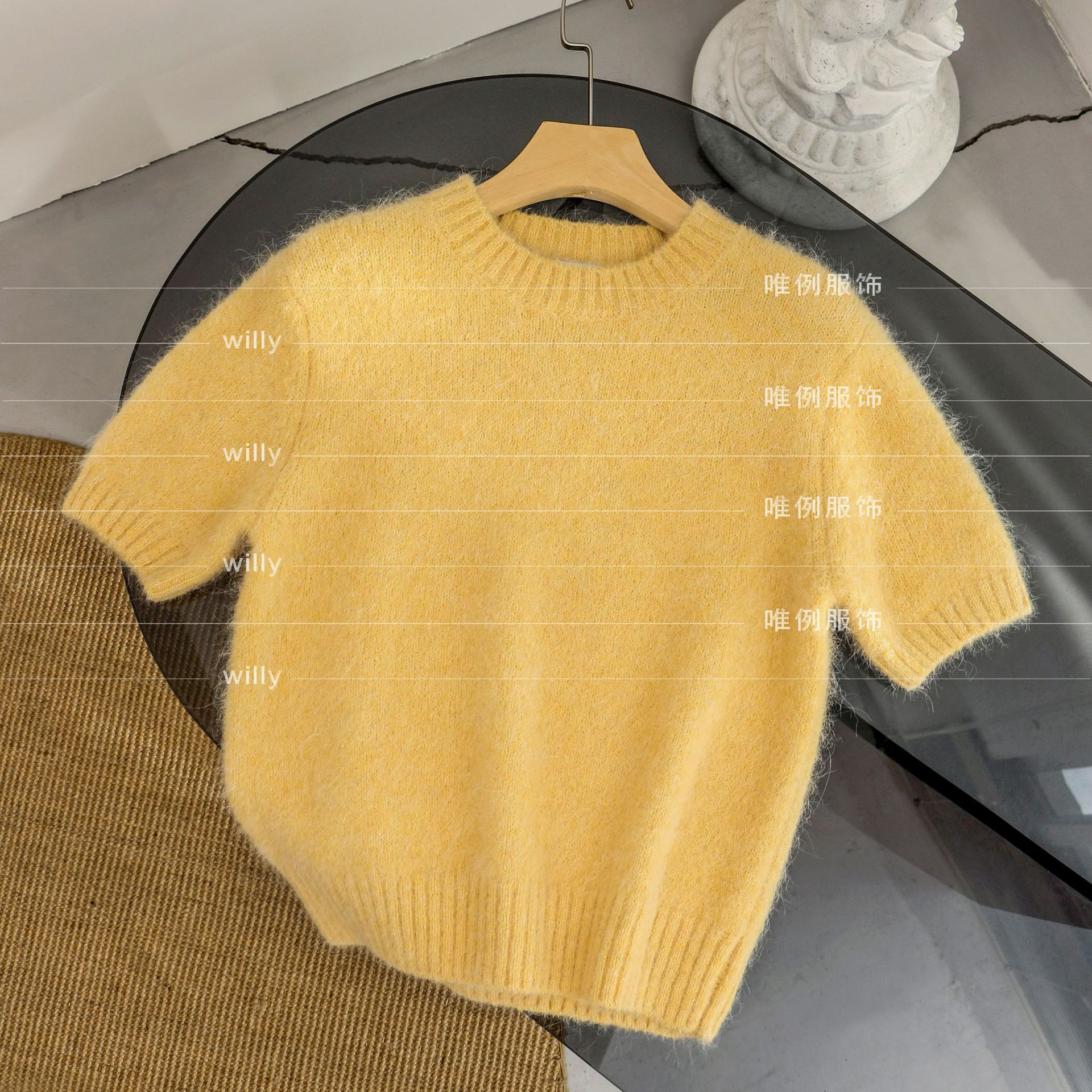 | nameOriginal | V363 soft skin-friendly alpaca wool loose round neck knitted short sleeve top sweater |