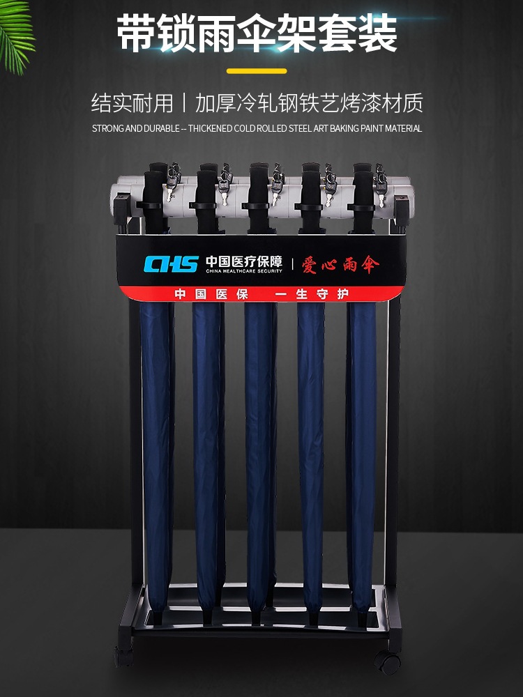 | nameOriginal | V3FP commercial umbrella storage rack with lock suit printable logo advertising anti-rust Hotel bank lobby |