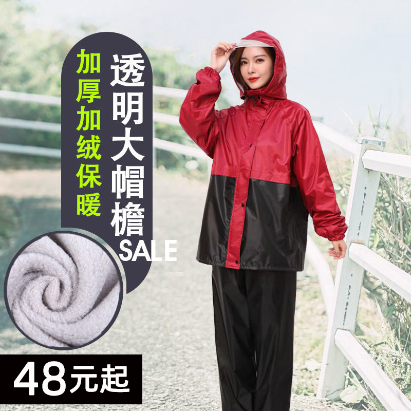 V3FP fleece-lined raincoat rain pants rainproof suit thickened split electric car motorcycle men and women Adult cold-proof household