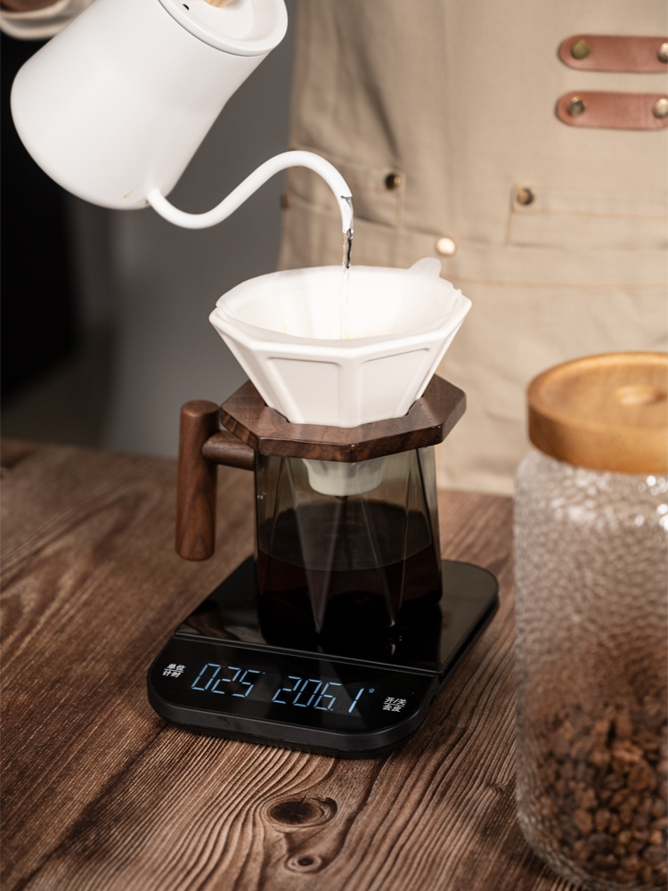 V3FP wild brown shake eight-side wooden handle hand coffee sharing pot suit obsidian borosilicate glass coffee