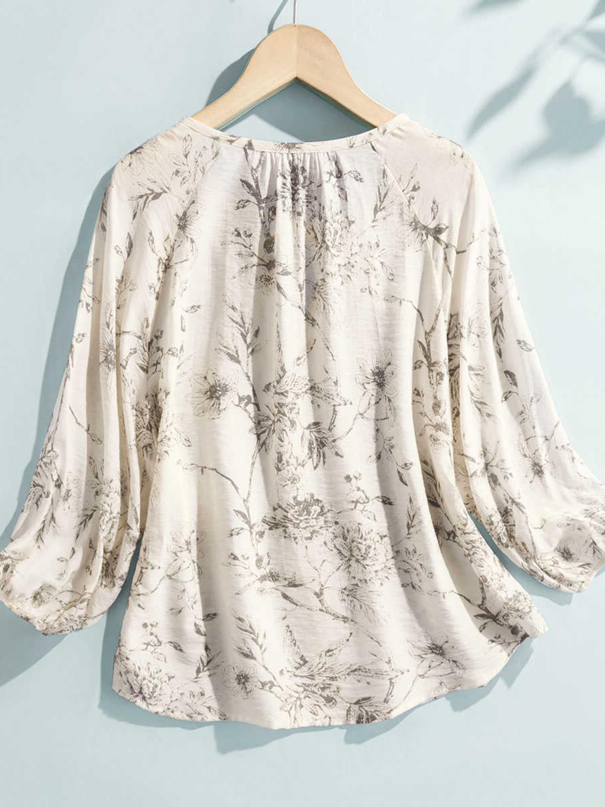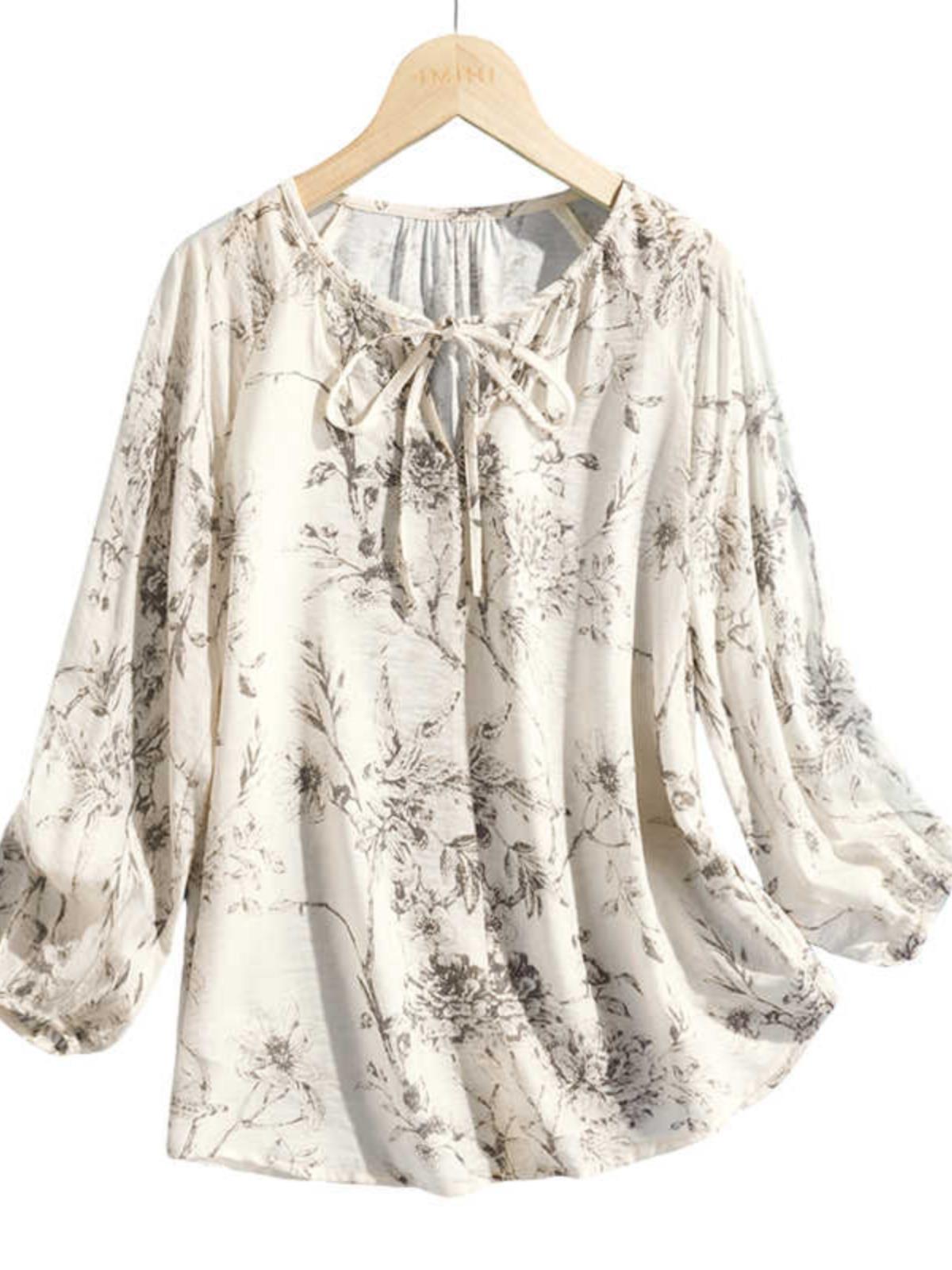 | nameOriginal | Vacation-style Romantic Floral Shirt Women's 2024 Summer New Arrival Printed Lace-up Thin Shirt T-shirt Chic Top |