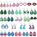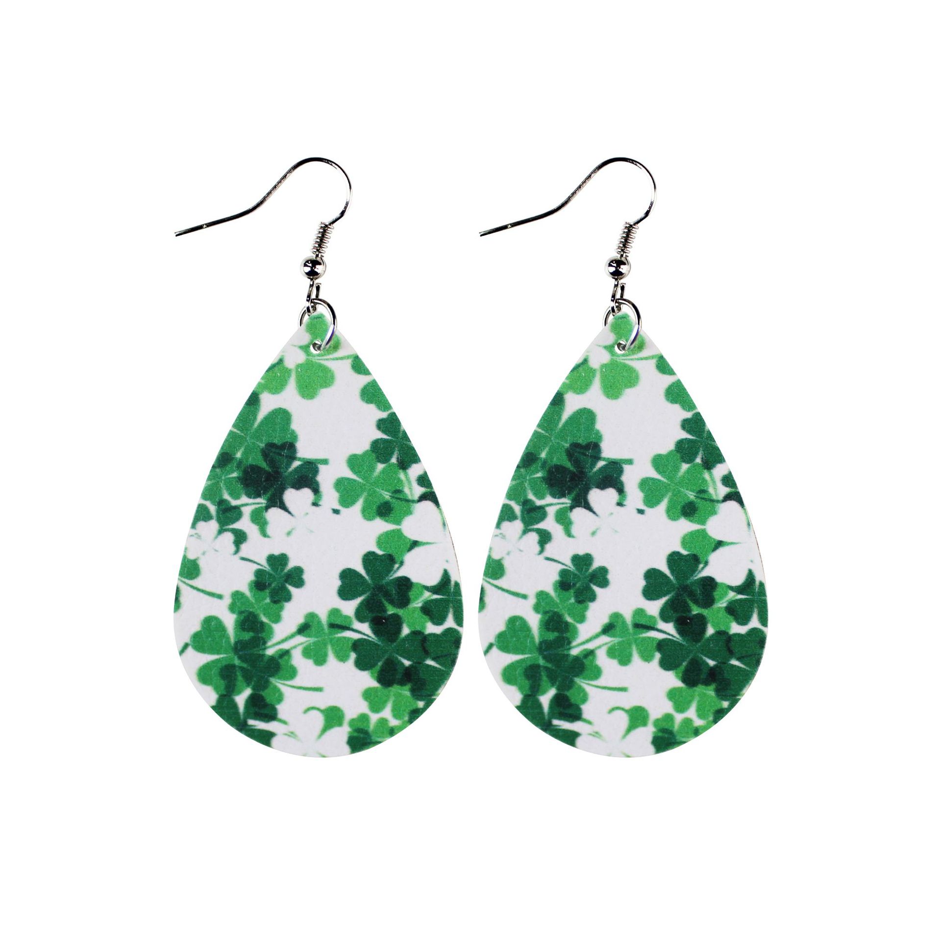 Valentine’s Day St. Patrick’s Day Easter Combination Leather Earrings Love Clover Irish Cross Border