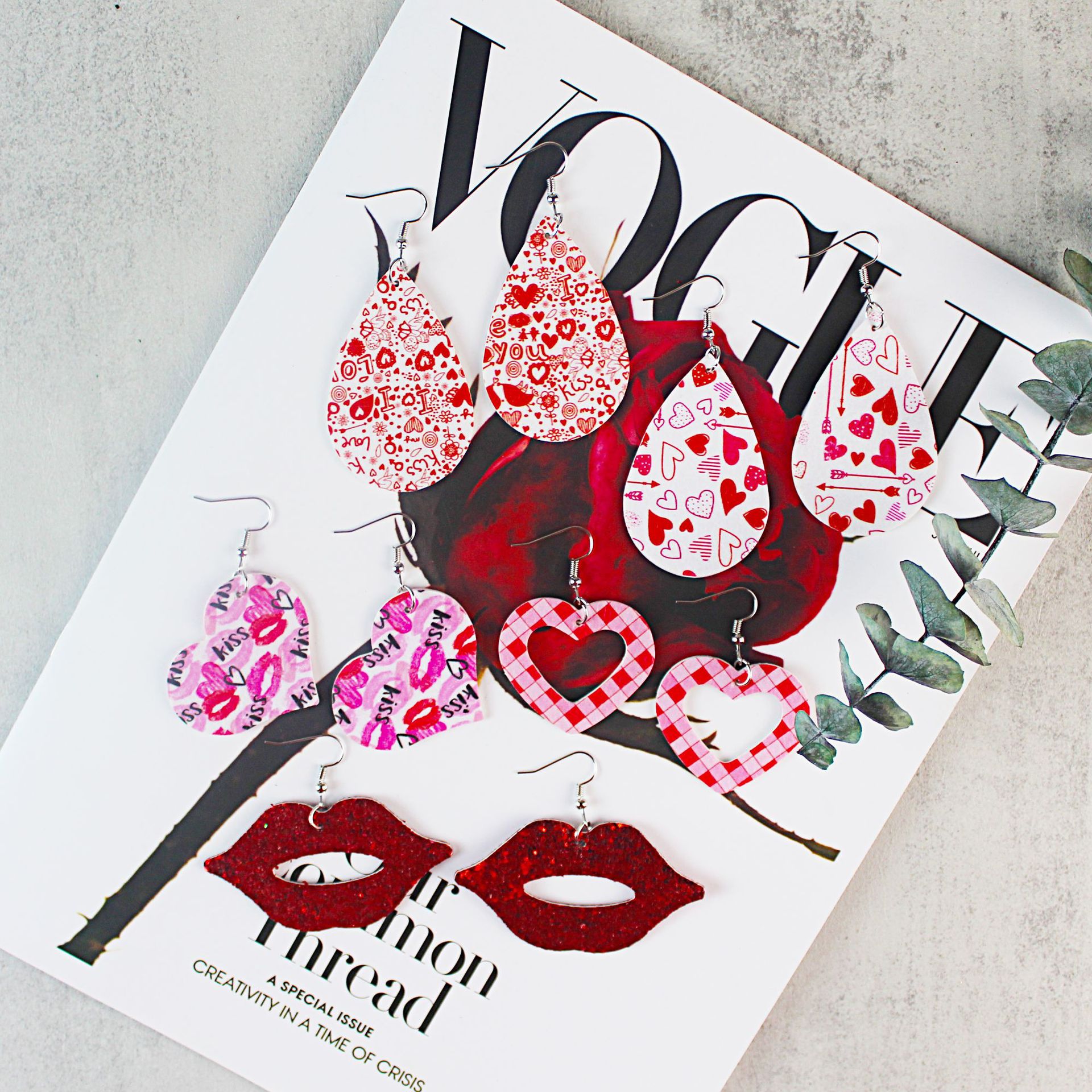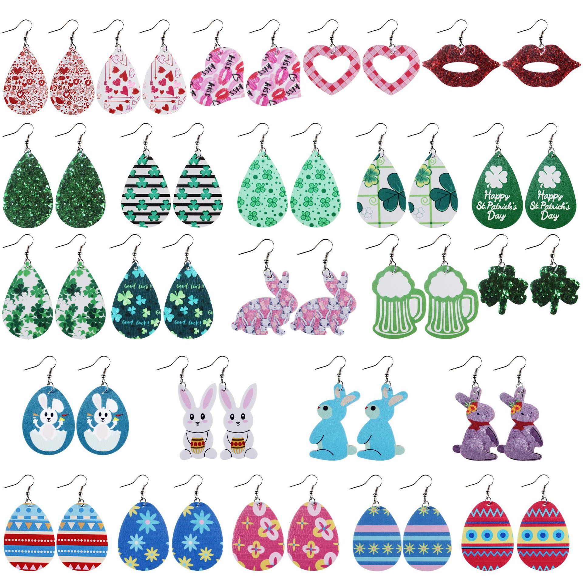 Valentine's Day St. Patrick's Day Easter Combination Leather Earrings Love Clover Irish Cross Border