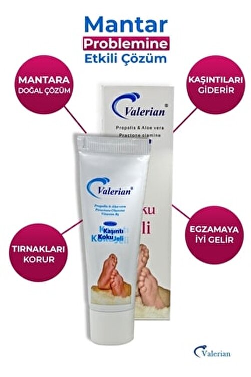 Valerian Foot Odor and Hand, Nail, Fungus Gel 25 ml Foot Odor Remover Sulfur Soap -Valerian Foot Fungus Gel is a Dermotologically Tested Hand, Foot, Nail Fungus and Foot Odor Remover Product with 18 Years Domestic and Overseas Customer Satisfaction. -No Chemicals! In What Situation Can You Use? 1.Bee Bites 2.Hand and Foot Fungus Removes Itching 3.Foot Odor 4.Removal of Warts Occurring on Hands 5.Skin Sinking Near Nails (Called Satan’s Nail) 6.Used to Remove Temrah Occurring in Various Areas of Your Body. Can We Use It on Our Animals? -Yes, You can use it in fungal problems occurring in all animals. -You can use it to destroy scabies germ formed in cats and dogs. What are the Benefits of the Product? 1.Itching Remover 2.Odor Remover 3.Good for Nail Fungus 4.Removes Fungus on All Skin 5.Can Be Used For Hair Loss And Dandruff 6.Can Be Used For Non-Passing Wounds. How to Use There Are Different Types Of Usage For Each Of Your Problems. We Will Help If You Can Report Your Problems To Our Party. General Use: Wash the Problem Area in Warm Water Before Bedtime, Clean With Soap. After drying, you can apply Valerian Foot Gel. (You Can Provide Use With Sulfur Soap.)