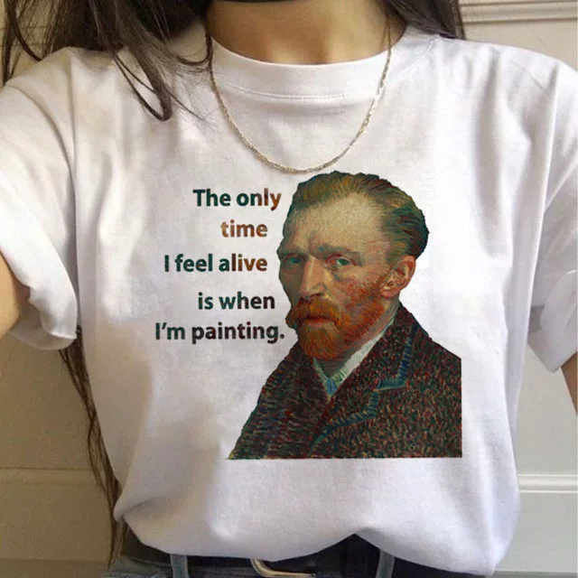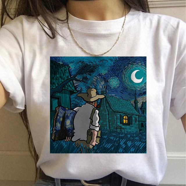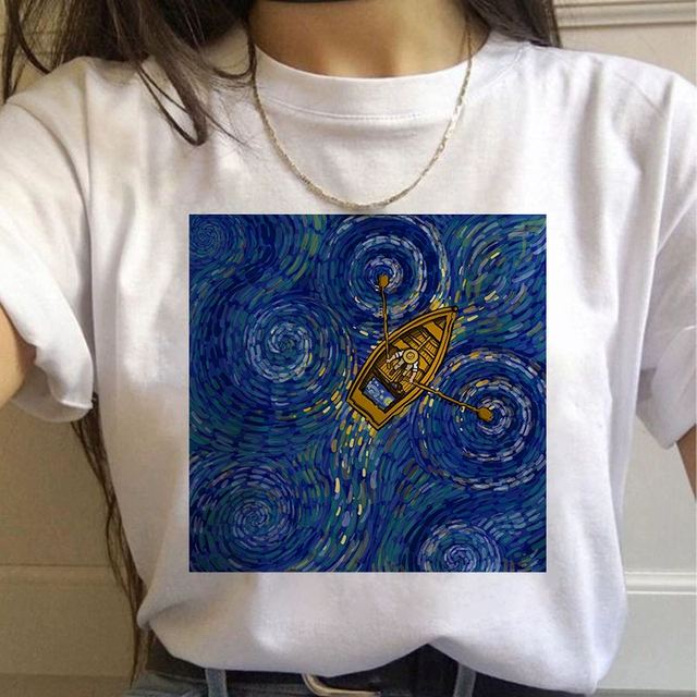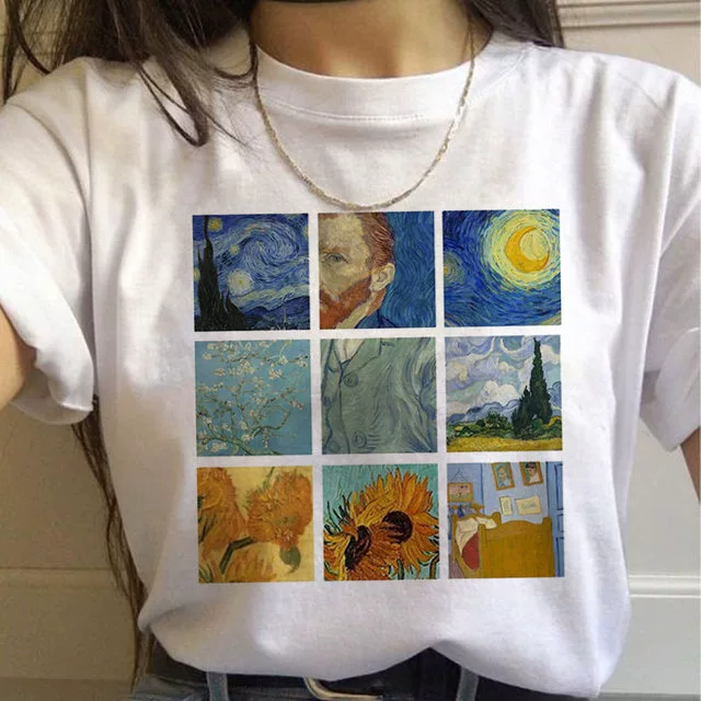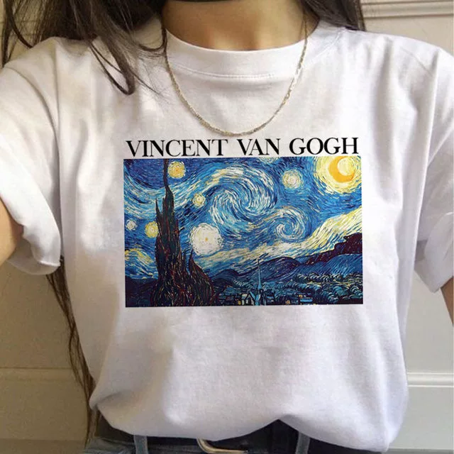 | nameOriginal | Van Gogh oil painting European and American large size round neck fashion cartoon loose round neck top casual ins large size short sleeve T-shirt for women |