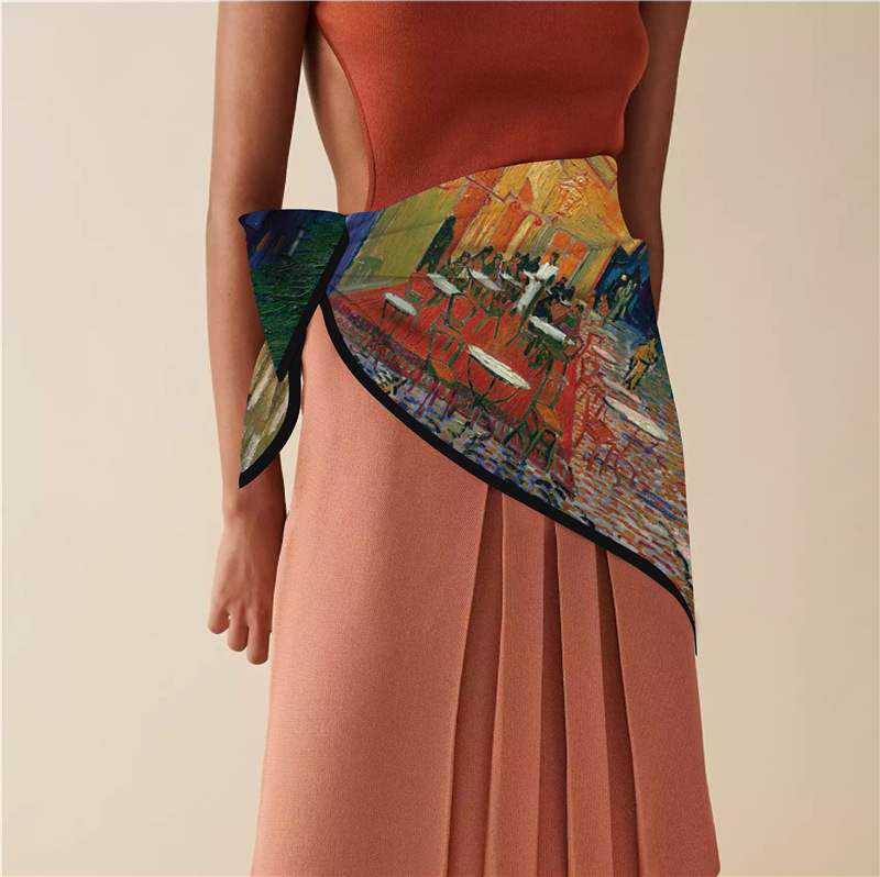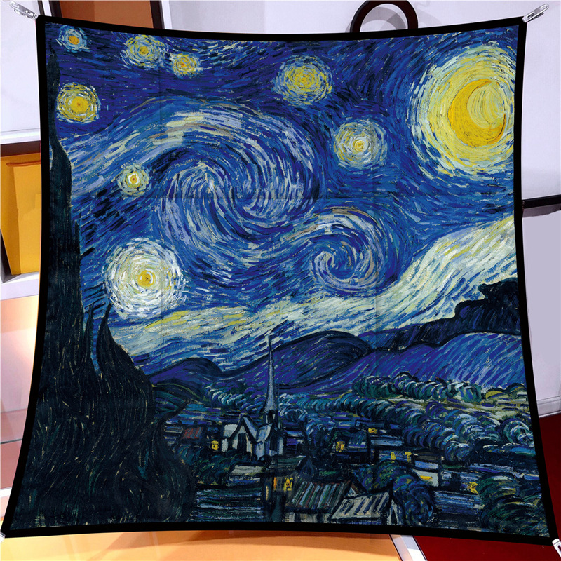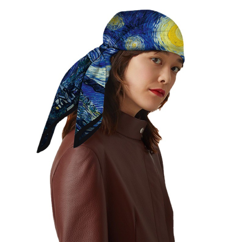 | nameOriginal | Van Gogh oil painting style artistic large square scarf new 90cm twill silk Women's scarf decorative handmade edge scarf scarf |