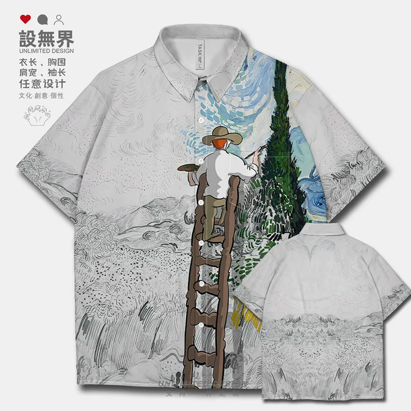 | nameOriginal | Van Gogh Starry Sky Wheat Field Illustration Men's Short Sleeve Shirt |