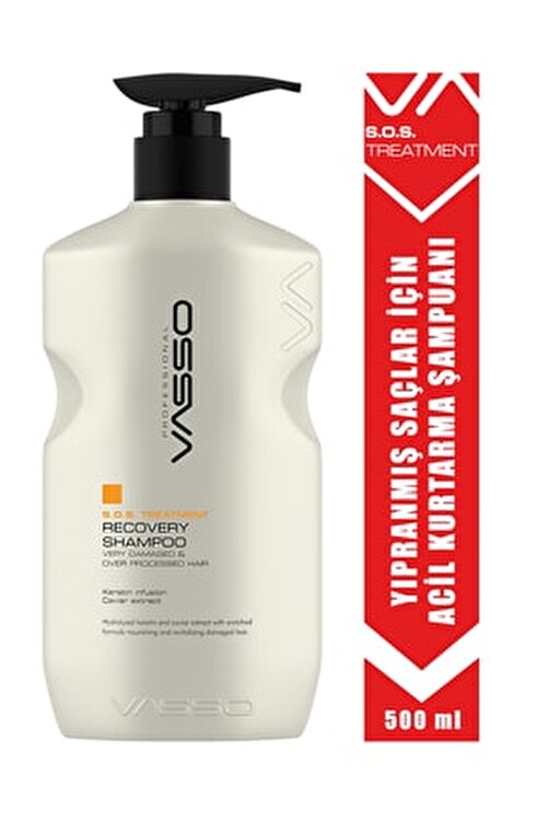 Vasso S.O.S. Treatment Recovery Shampoo – Regenerating Shampoo cleanses and nourishes and revitalizes your hair without tearing with its liquefied Micro Keratin and Animal Extract