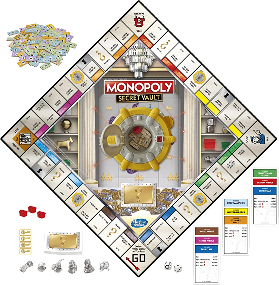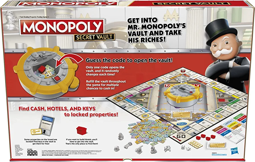 The Monopoly Secret Vault board game is a fun and exciting game for kids aged 8 and above. The game features Mr. Monopoly’s vault, which is filled with valuable items that can help players increase their wealth. To start the game, players fill the vault with riches, and each time a player unlocks it, they get to keep what’s inside, and the vault gets refilled with more valuables.