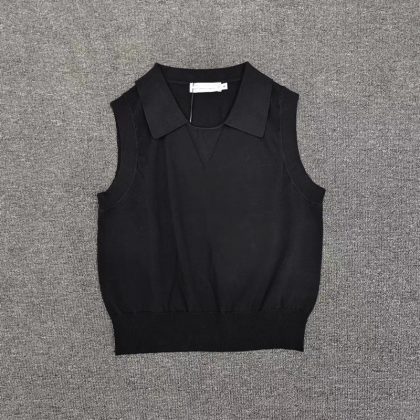 VC Family Knitted Polo Shirt Women’s 2024 Spring and Summer New Casual All-match Lapel Sleeveless Pullover Top