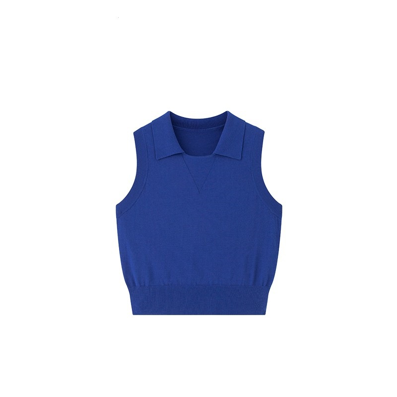 VC Family Knitted Polo Shirt Women's 2024 Spring and Summer New Casual All-match Lapel Sleeveless Pullover Top