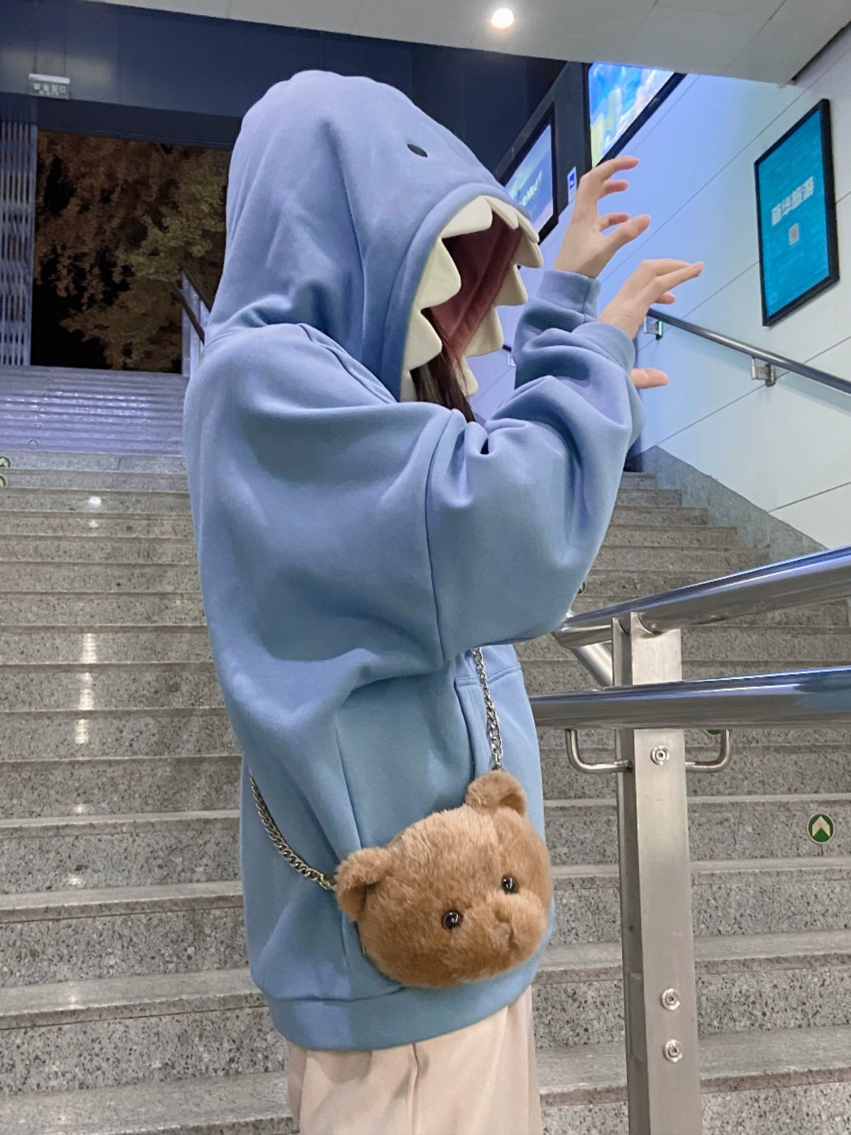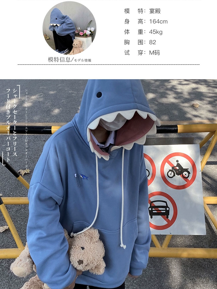 Veded Ved original design shark sweater hooded spring and autumn college style couple jk personality jacket plus velvet