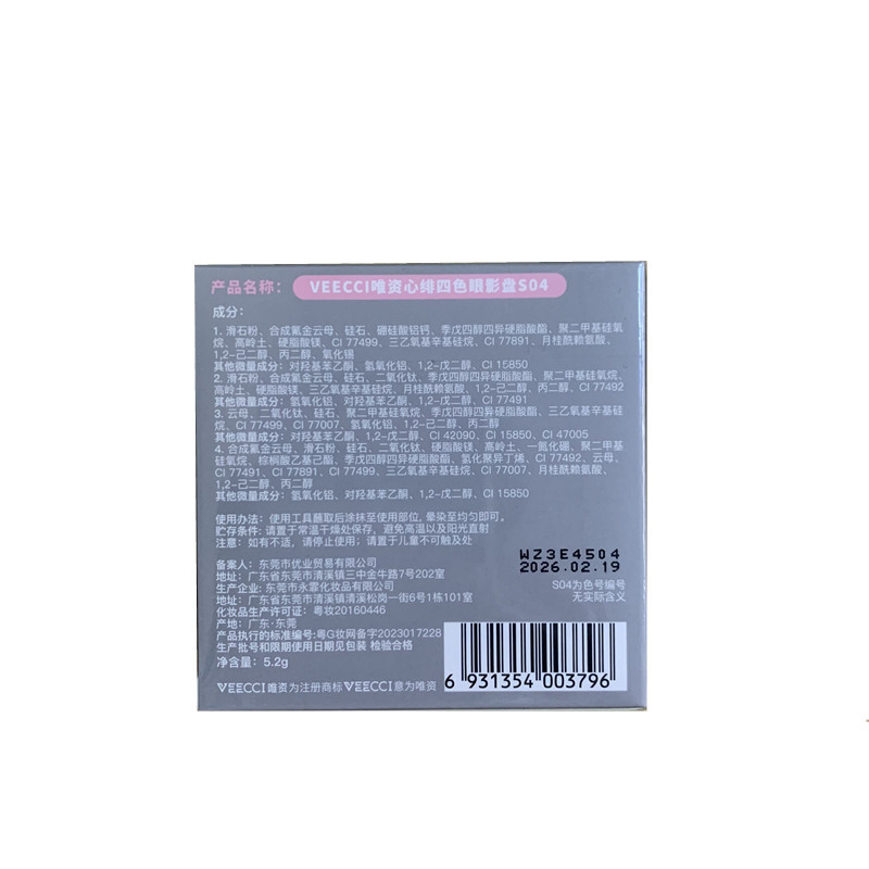VEECCI only four-color eyeshadow plate novice Pearl glitter matte earth color repair niche flagship store official