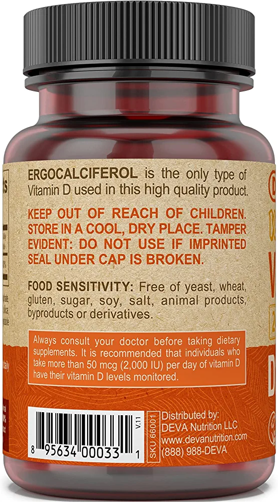 DEVA Vitamin D is 100% animal-free and guaranteed for purity, freshness, and labeled potency. All DEVA products are vegan and vegetarian, registered by the Vegan Society, the non-profit organization that coined the term “vegan.”
