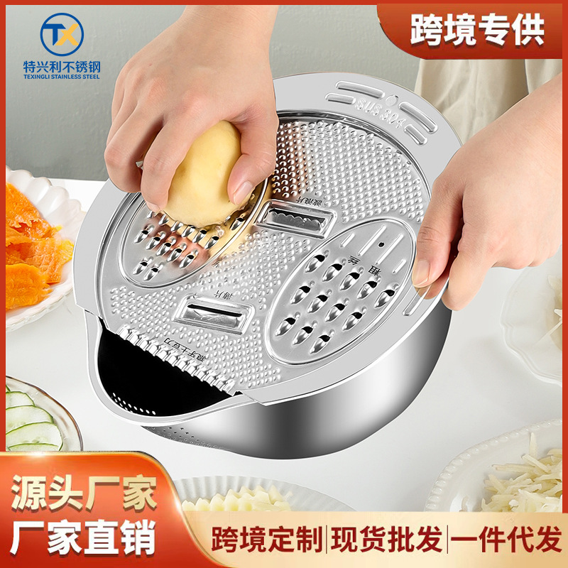 | nameOriginal | Vegetable cutting basin multi-functional food grade 304 stainless steel shredded basin plate vegetable radish shredded grater artifact |