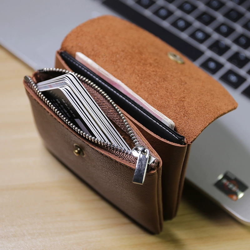 Vegetable tanned leather handmade cowhide mini coin purse for men and women genuine leather retro coin holder card holder zipper small wallet