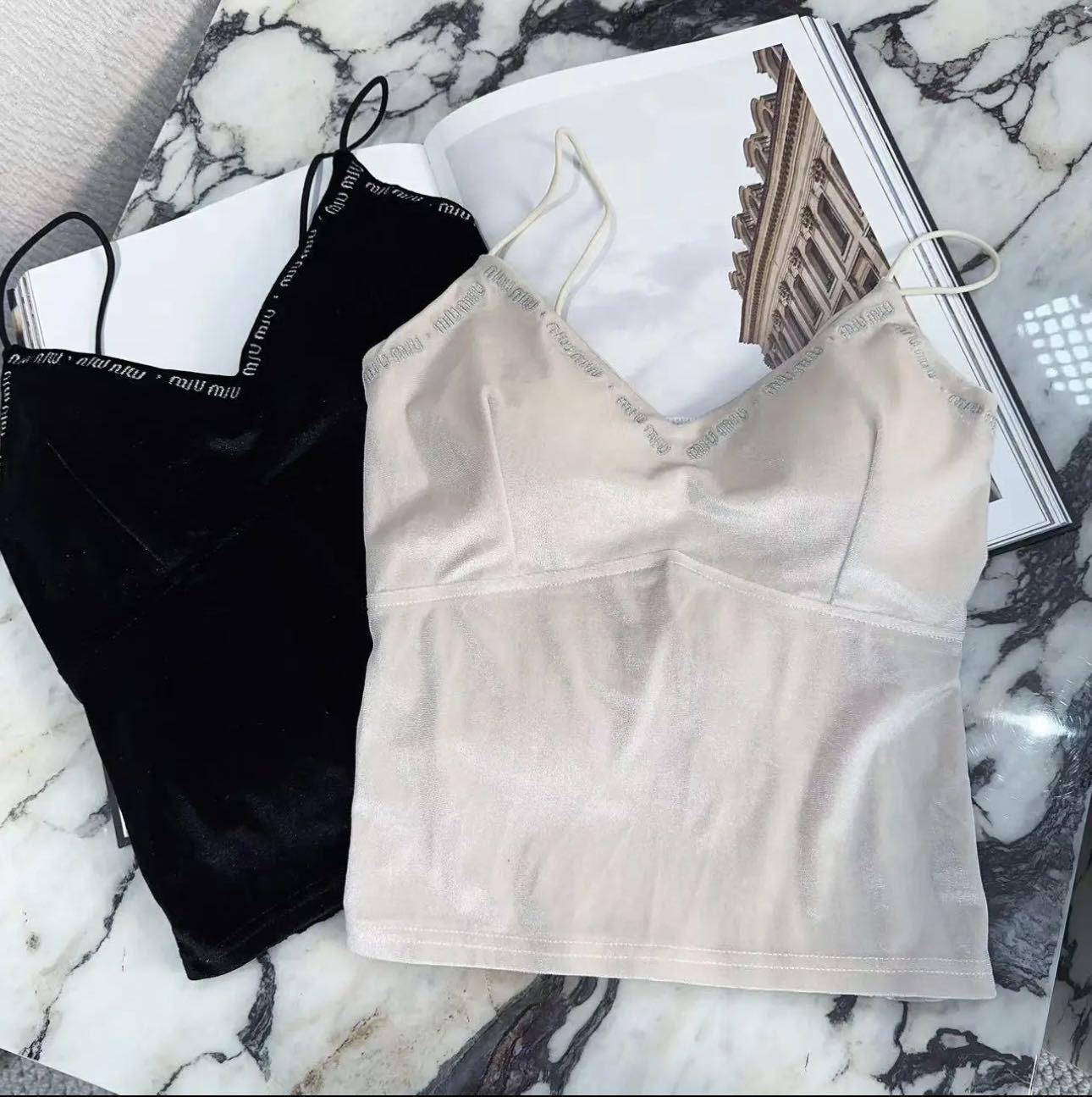 | nameOriginal | Velvet camisole popular popular brand bottoming wrapped chest temperament outer wear letter embroidery sexy fashion inner top |