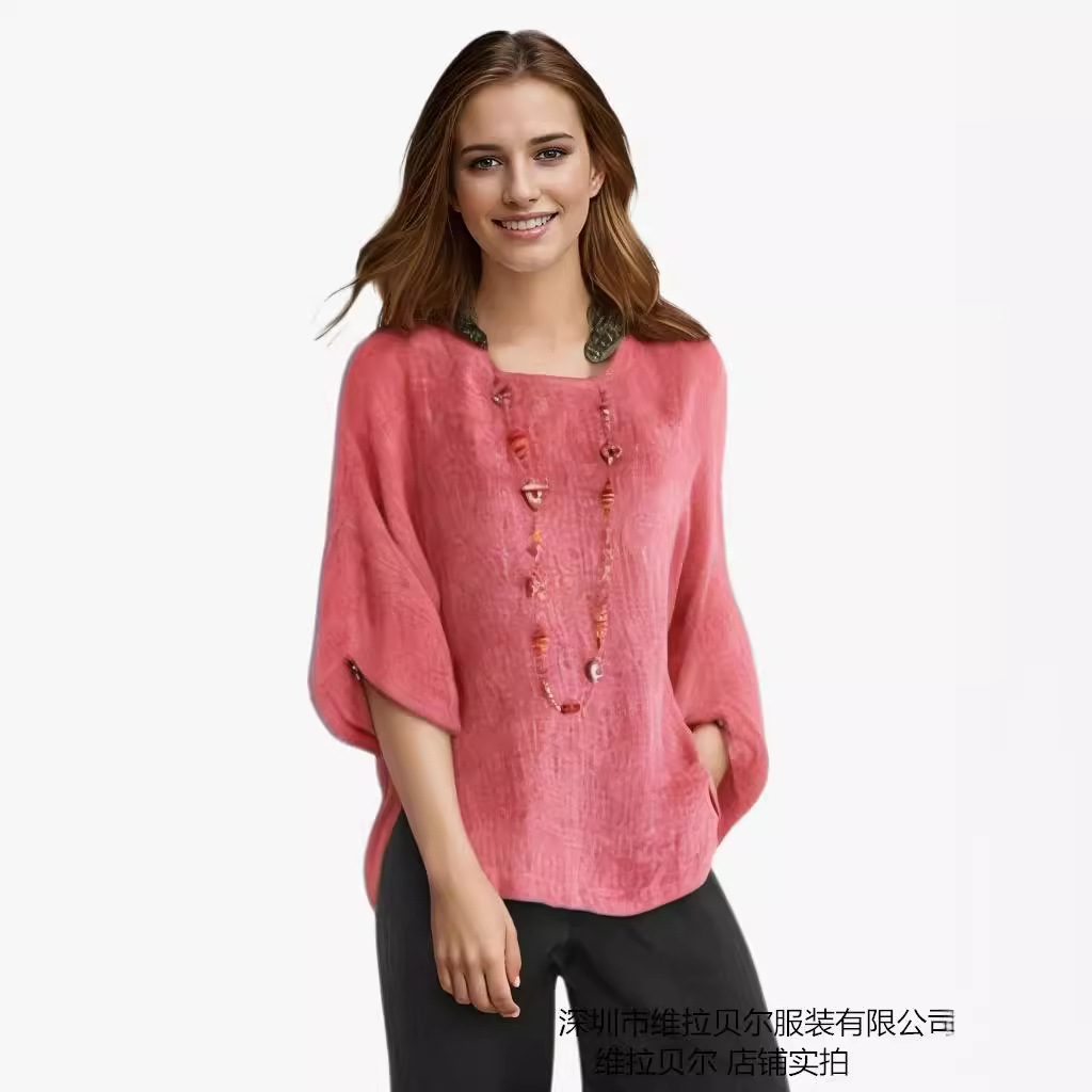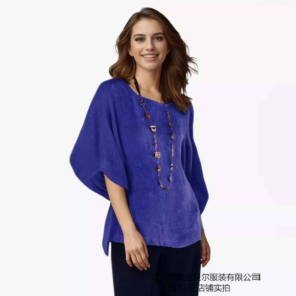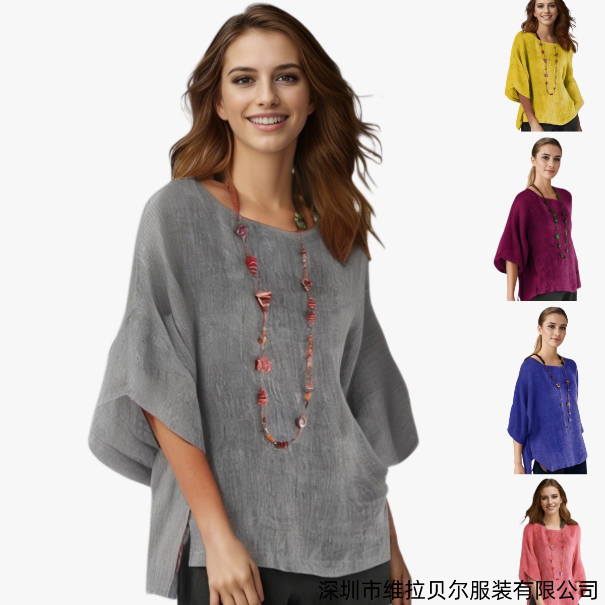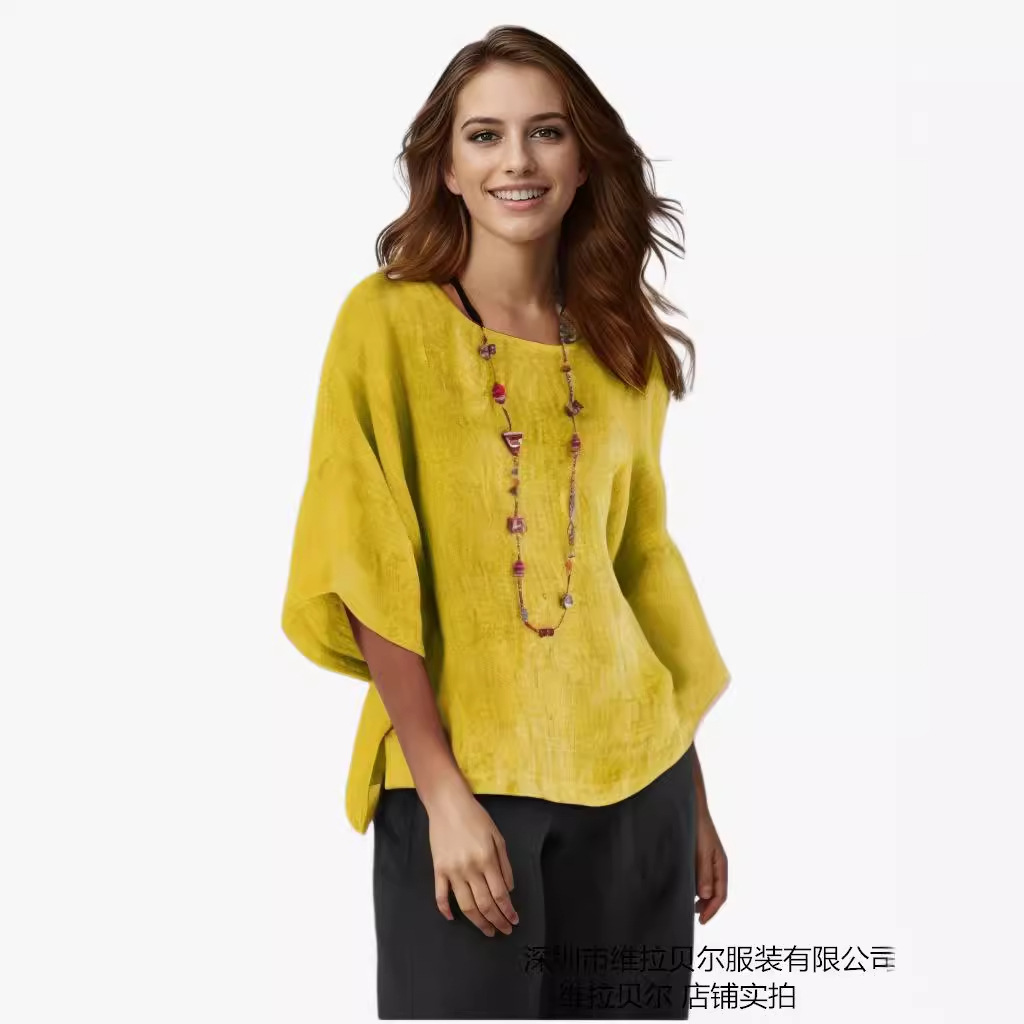 | nameOriginal | Vera Bell Real Photograph 2024eaby Amazon New Foreign Trade Women's Seven-point Sleeve Round Neck Cotton Linen Top |
