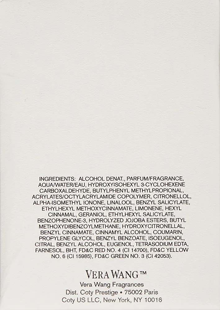 | nameOriginal | Vera Wang Eau de Parfum for Women – Delicate, Floral Scent – Notes of Iris, Lillies, & Sandalwood – Feminine & Subtle – 3.4 Fl Oz |