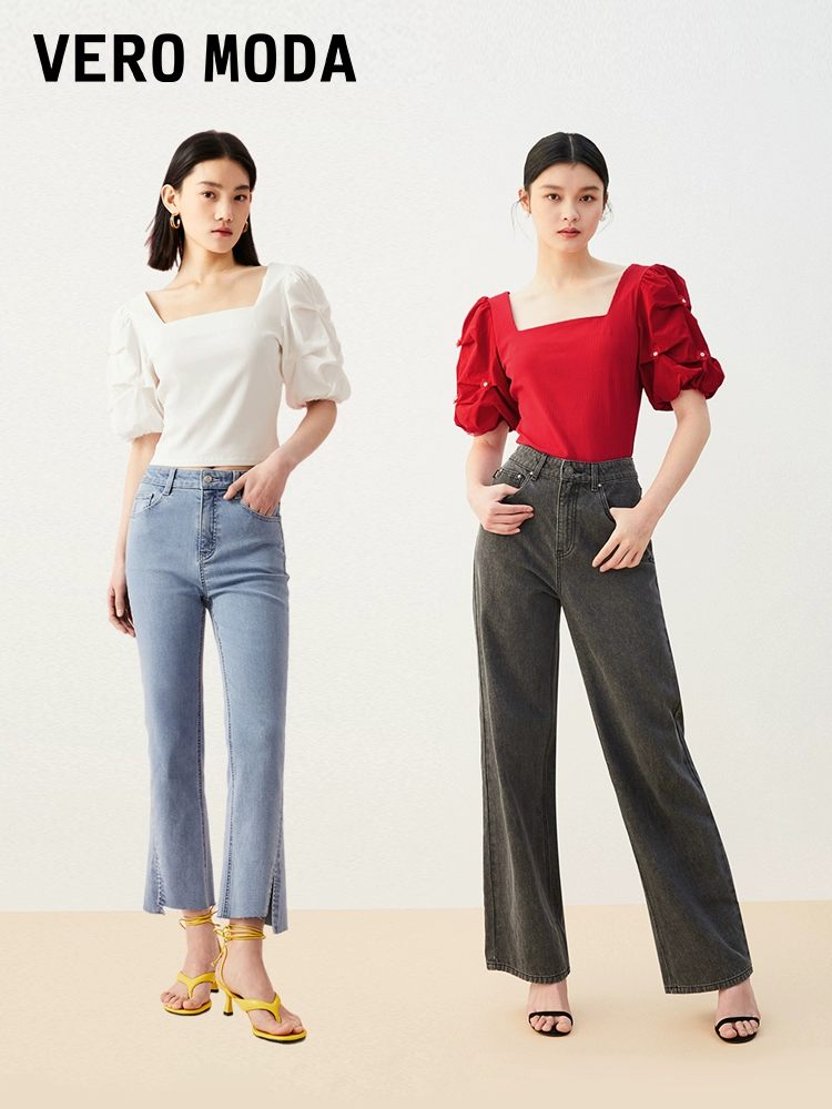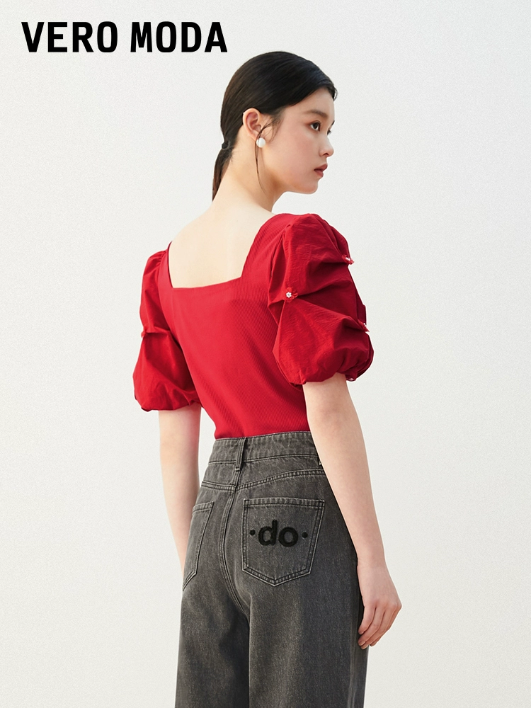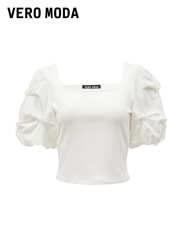 | nameOriginal | Vero Moda Ole T-shirt women's summer new square collar puff sleeves pinch pleats sweet temperament slim top versatile |