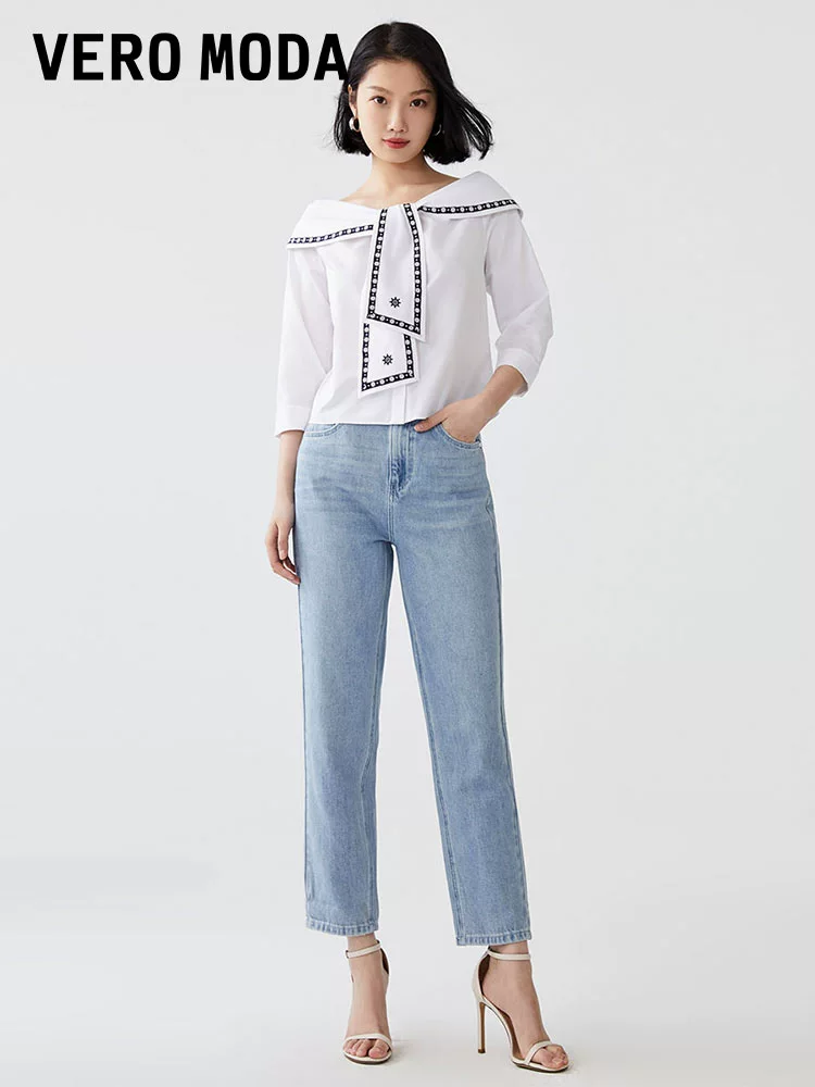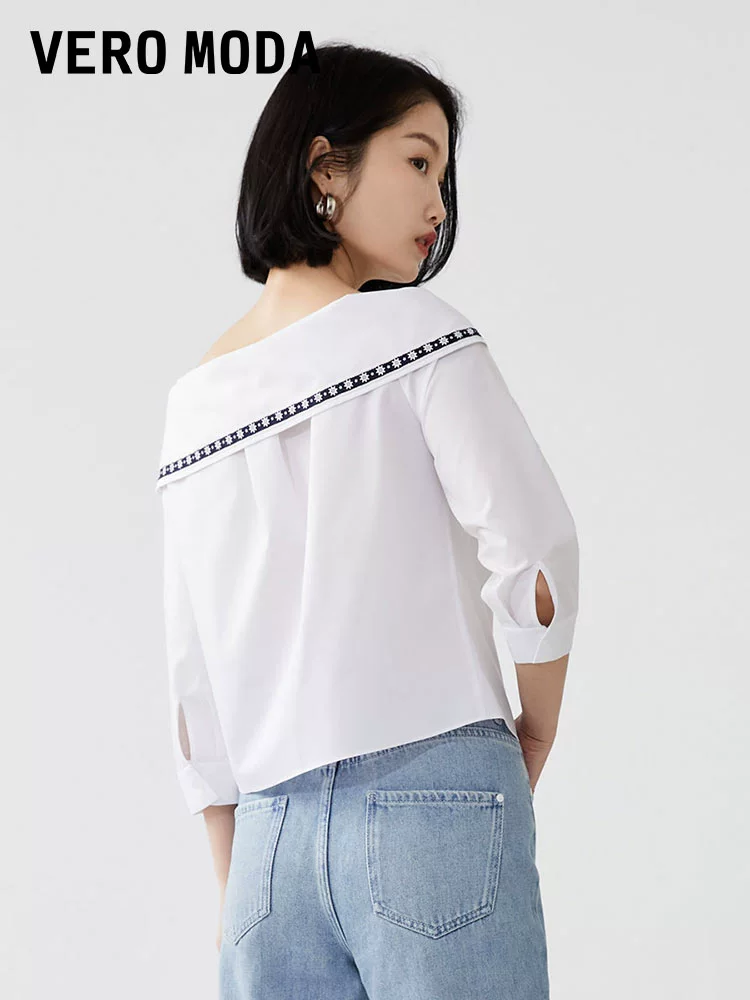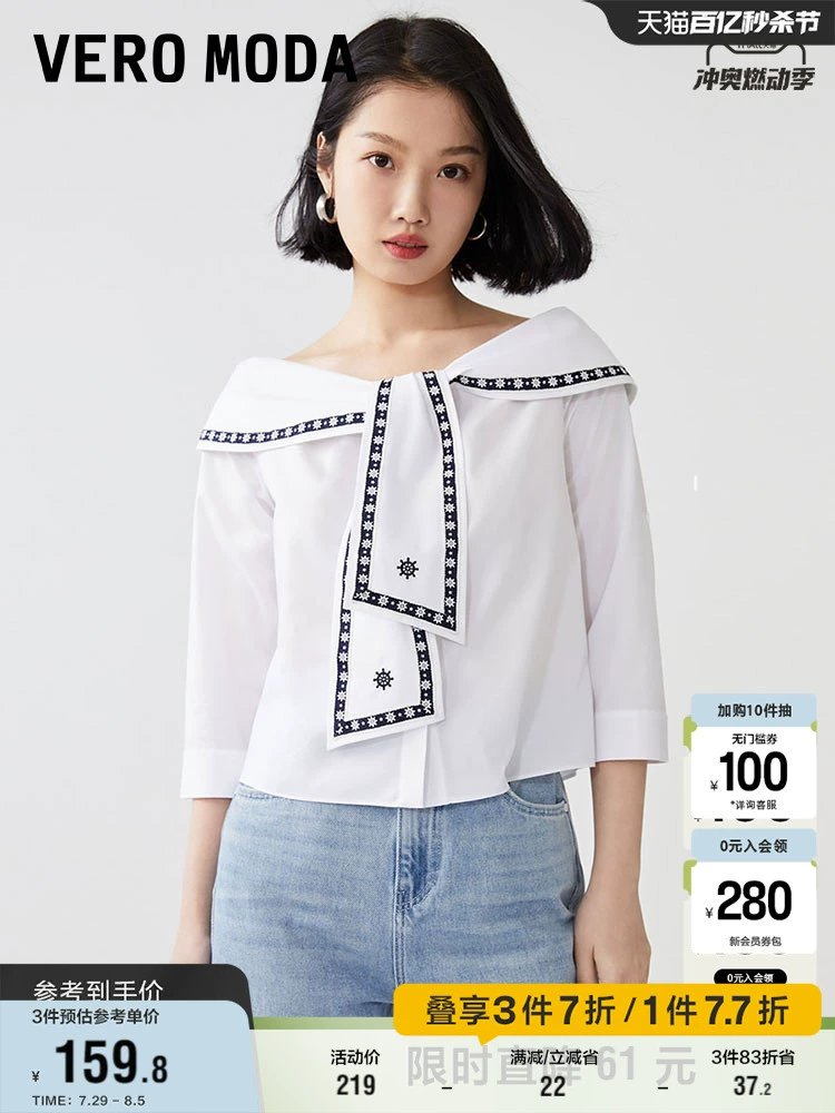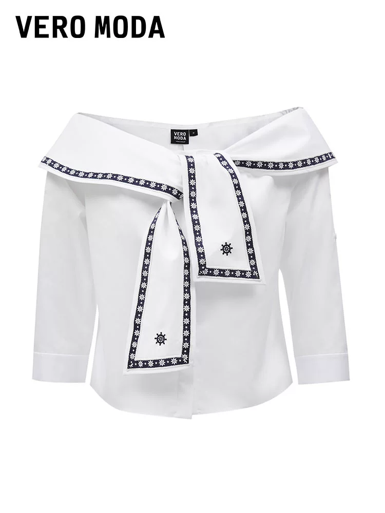| nameOriginal | Vero Moda Ole top women's summer new elegant one-shoulder navy style lace-up shirt versatile |