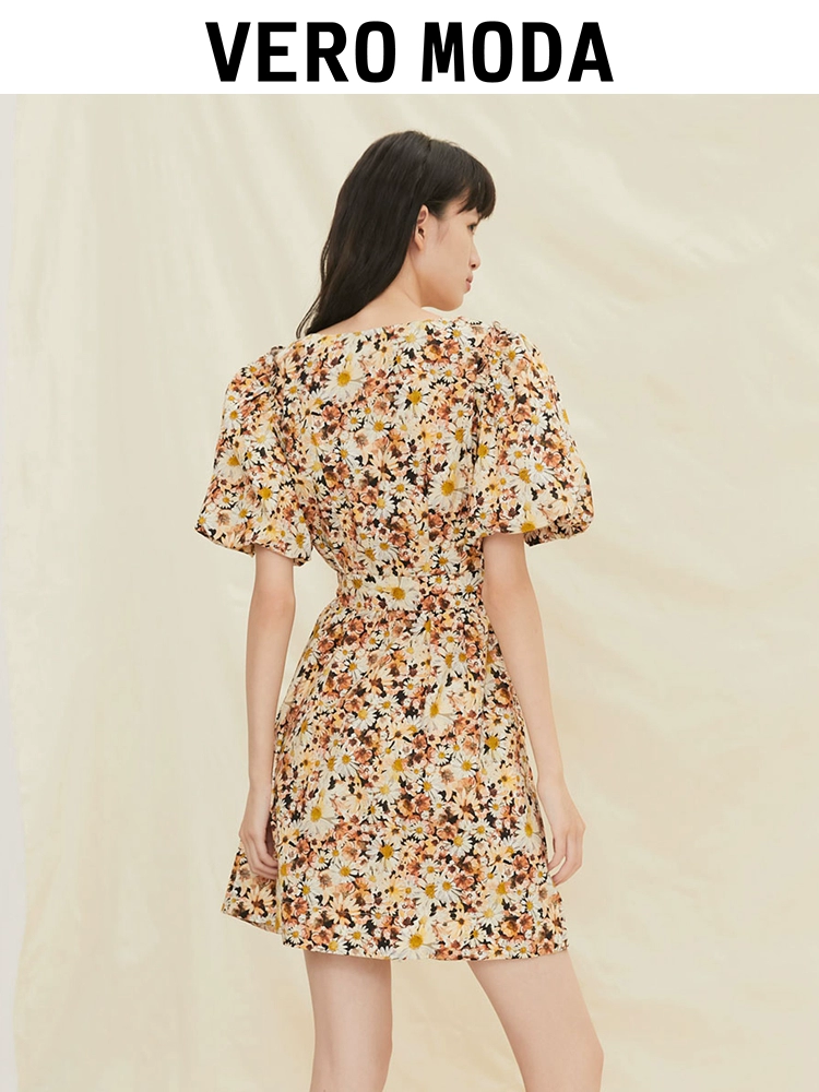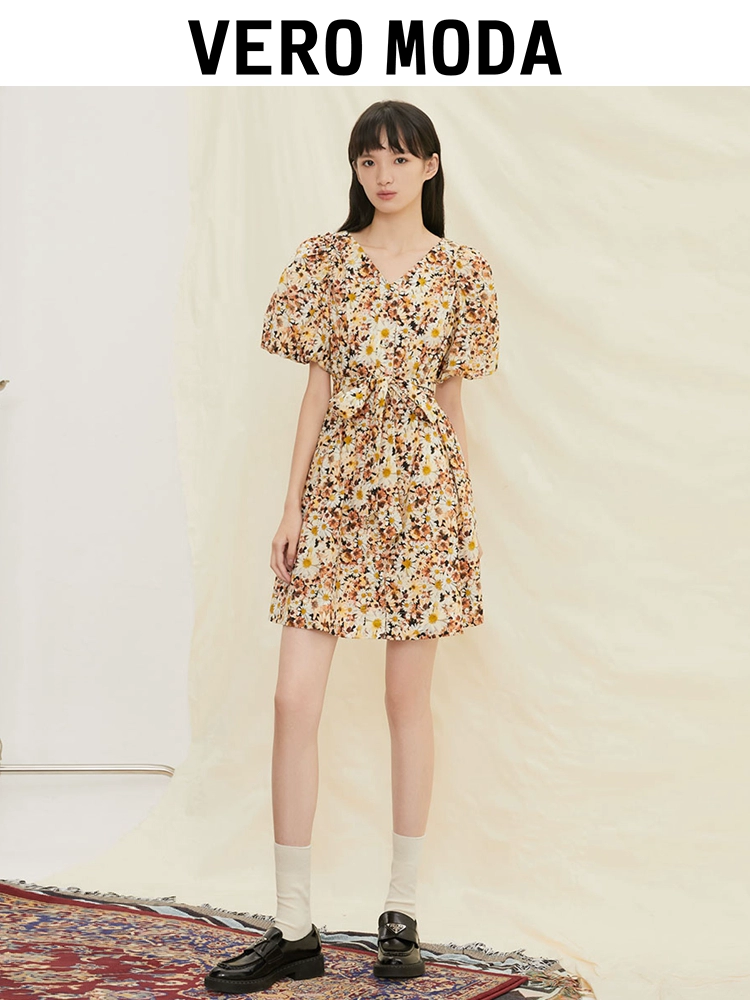 | nameOriginal | Vero Moda Outlet Dress Summer Clearance French Elegant Fresh Square Neck Lantern Sleeve Printed Skirt |