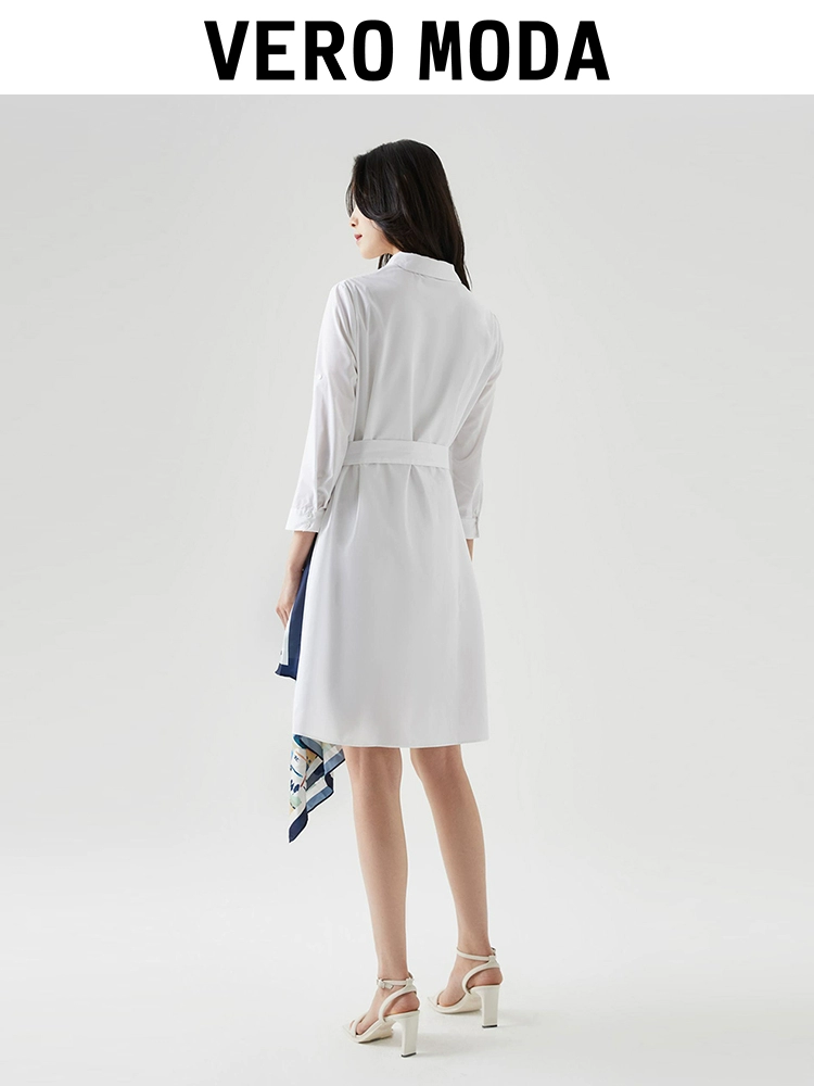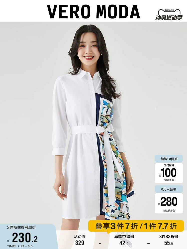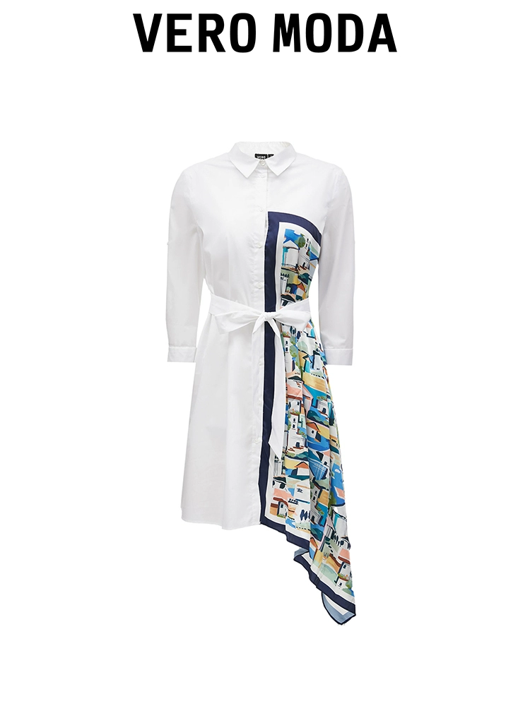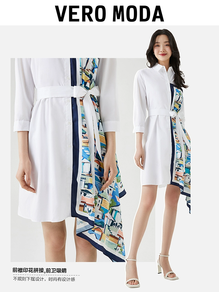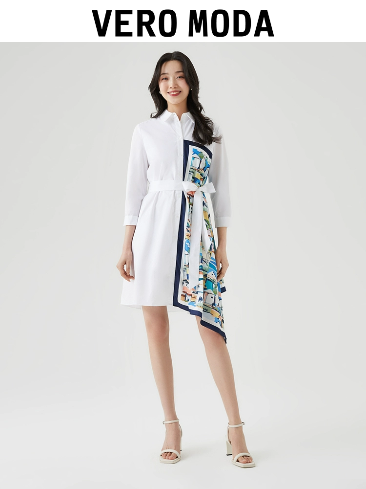| nameOriginal | Vero Moda Outlet Dress Summer New Elegant Shirt Skirt Printed Silk Scarf Color Matching Waist Three-quarter Sleeves |