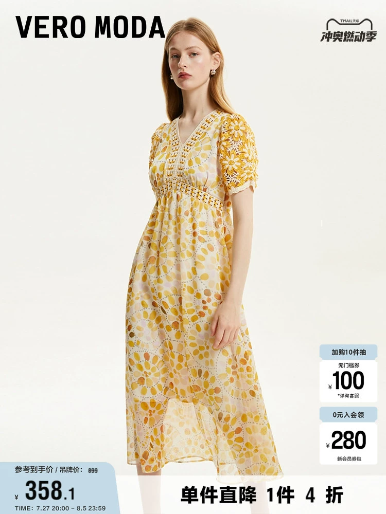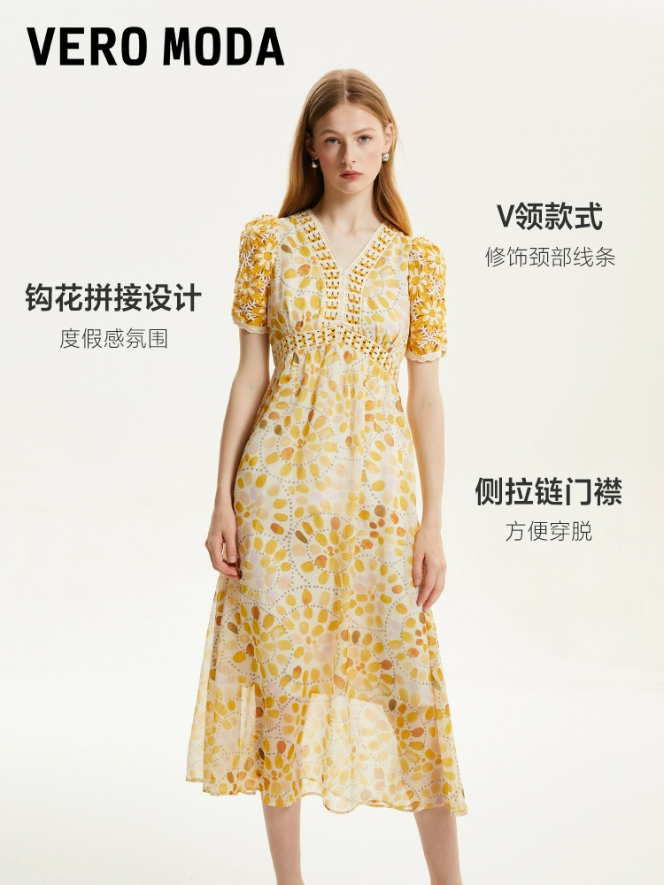 Vero Moda Outlet Dress Summer New Ethnic Style Vacation Feeling Crocheted Hollow Air Quality Long Skirt for Women