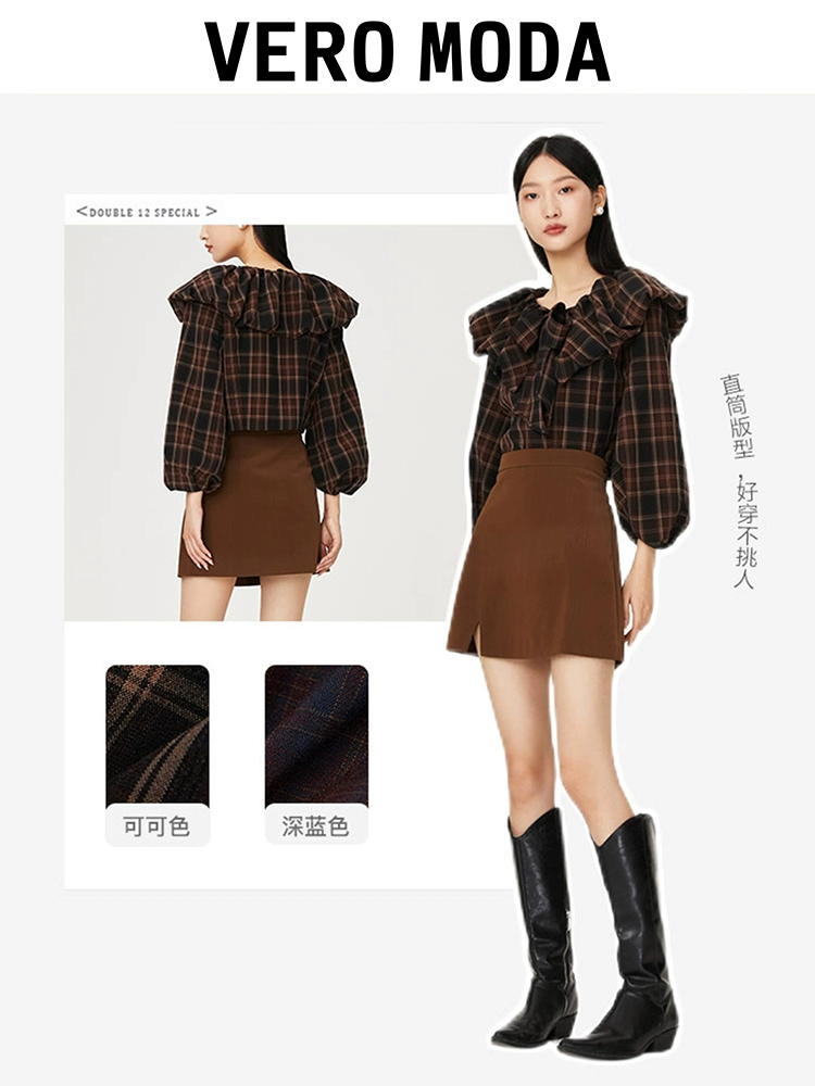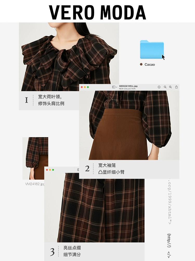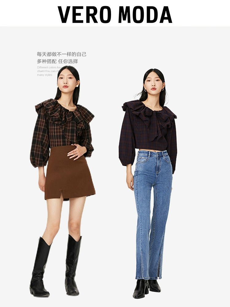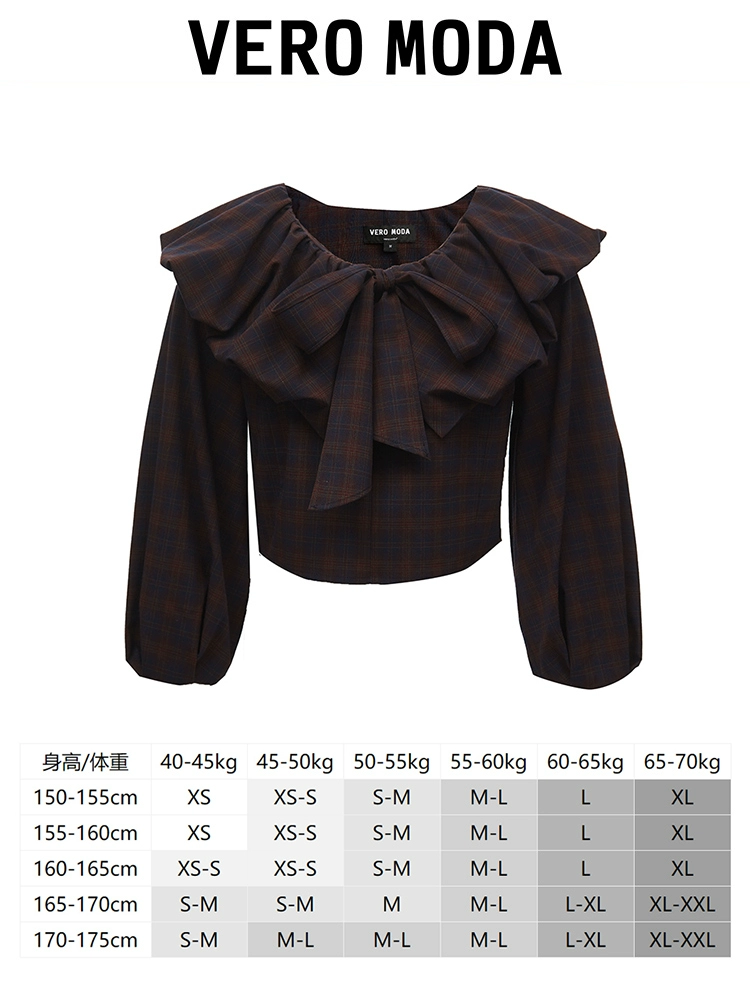 | nameOriginal | Vero Moda Outlet Shirt Spring and Autumn Clearance Retro Plaid Ruffle Collar Bow Versatile Top for Women |