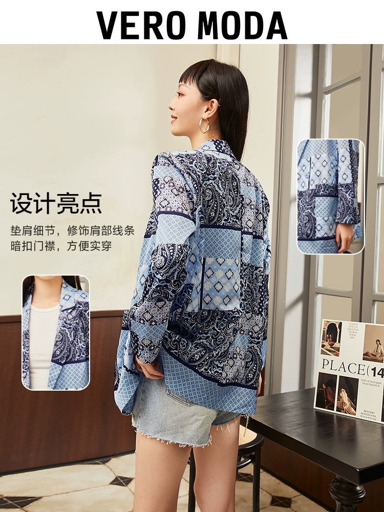 Vero Moda Outlet Suit Summer Clearance Ethnic Style Pattern Splicing Shoulder Pad Casual Jacket Top Women