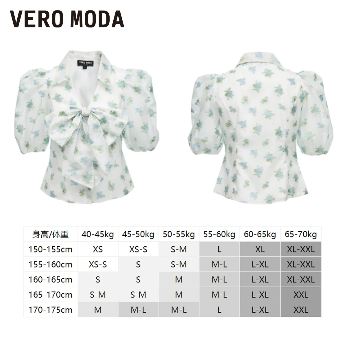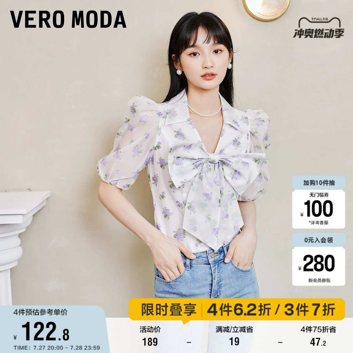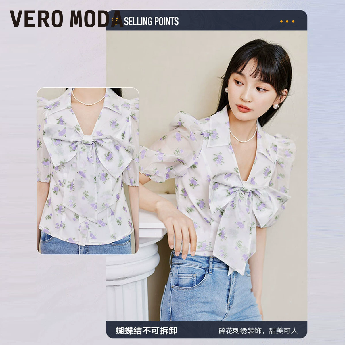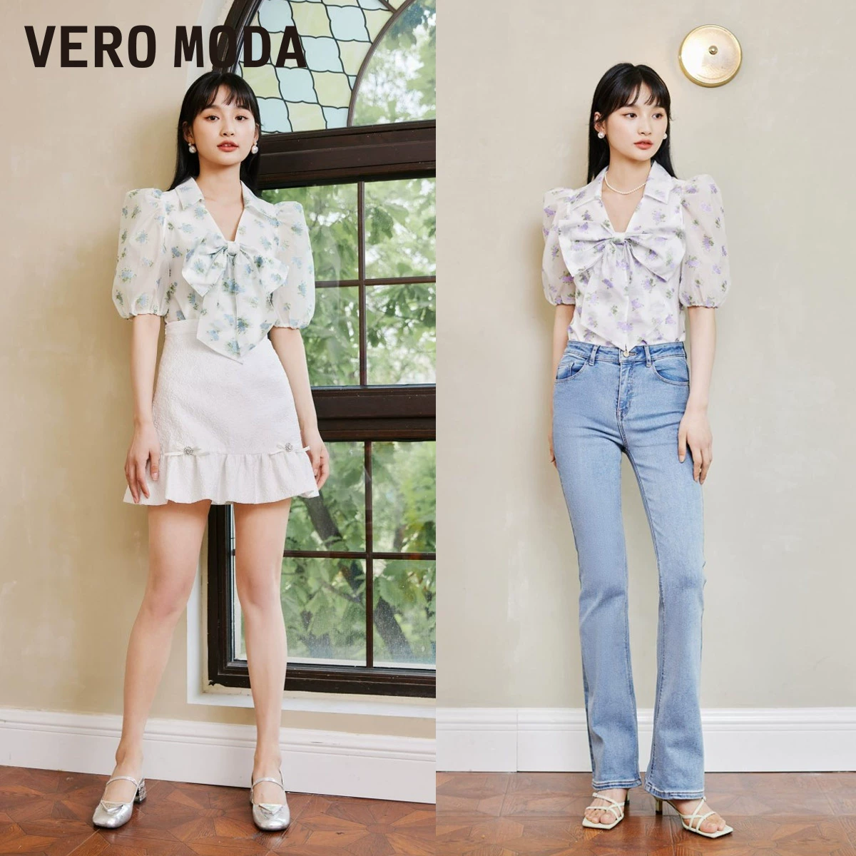 Vero Moda Ole Summer Clear Bow Printing Flower Bubble Bubble Short -sleeved Shirt Woman
