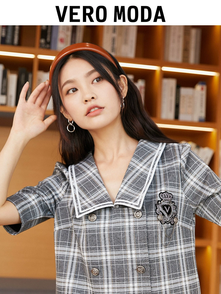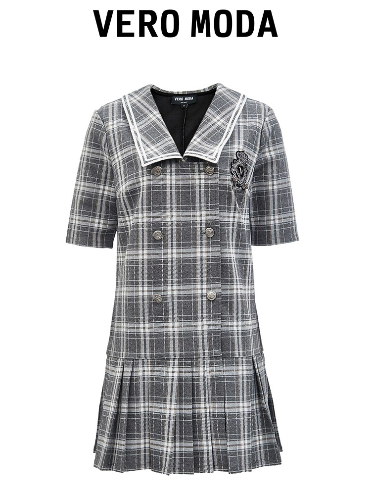 | nameOriginal | Vero Moda Outlet Summer Clearance Fashion College Style Checkerboard Pattern Large Lapel Pleated Hem Dress |