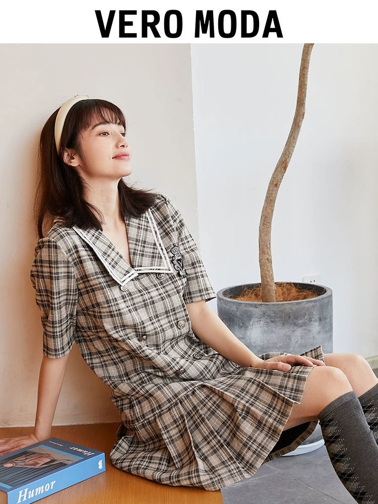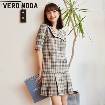 | nameOriginal | Vero Moda Outlet Summer Clearance Fashion College Style Checkerboard Pattern Large Lapel Pleated Hem Dress |
