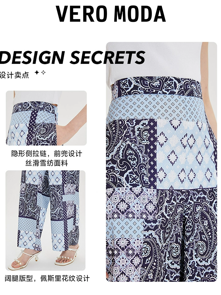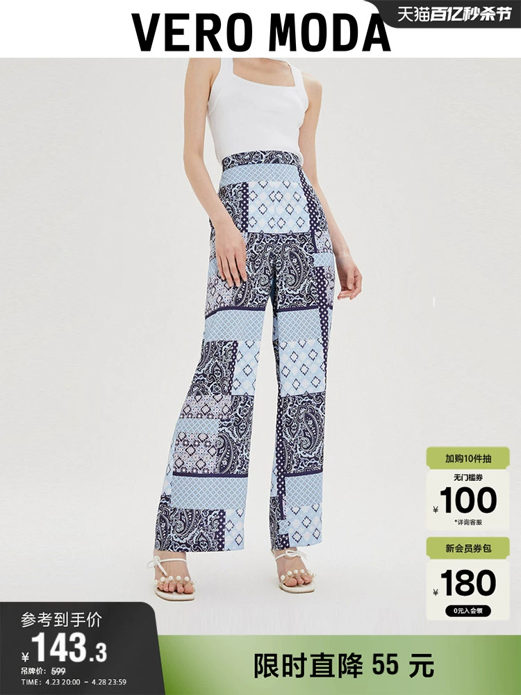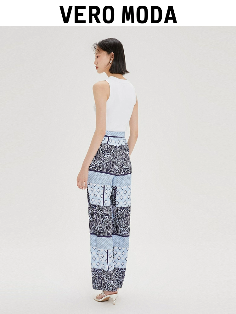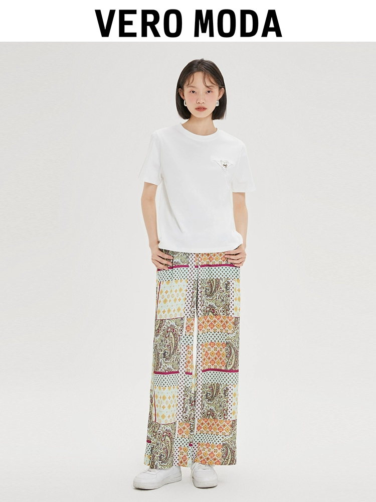Vero Moda Outlet Summer Clearance Fashion Personalized Printed Wide Leg Straight Loose Casual All-Match Pants Women