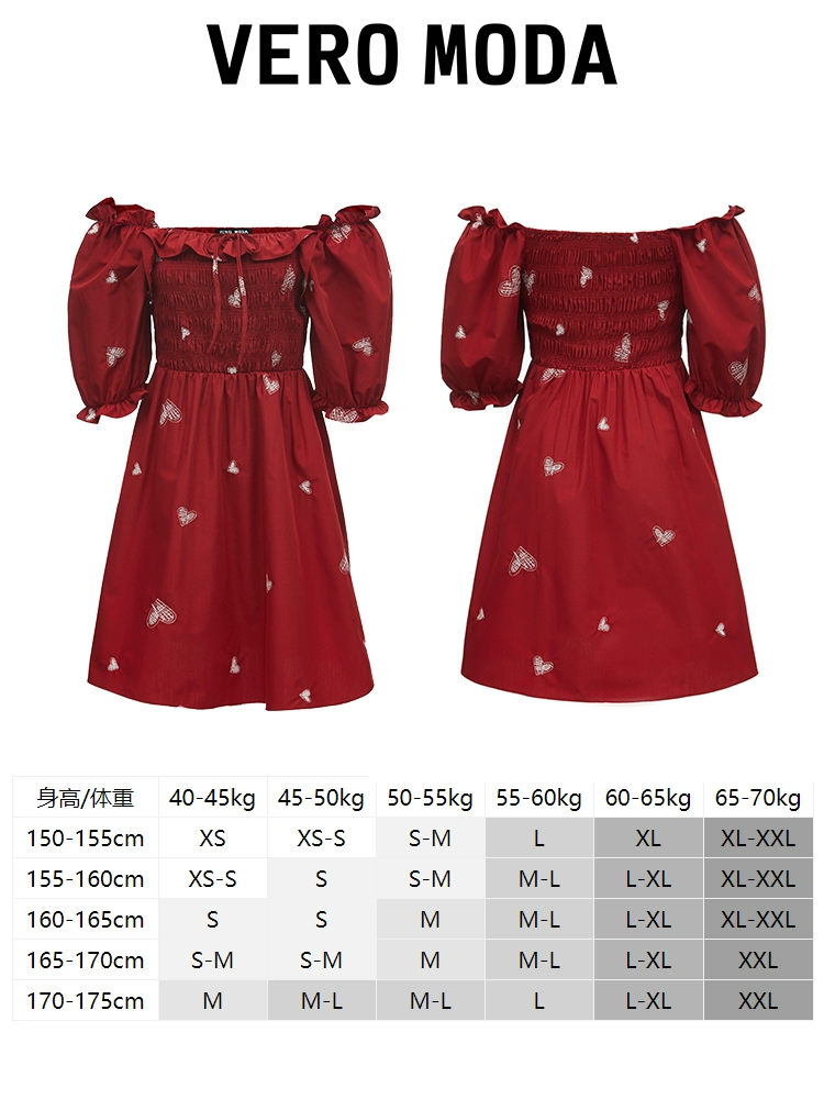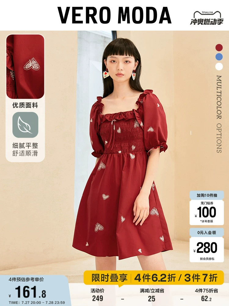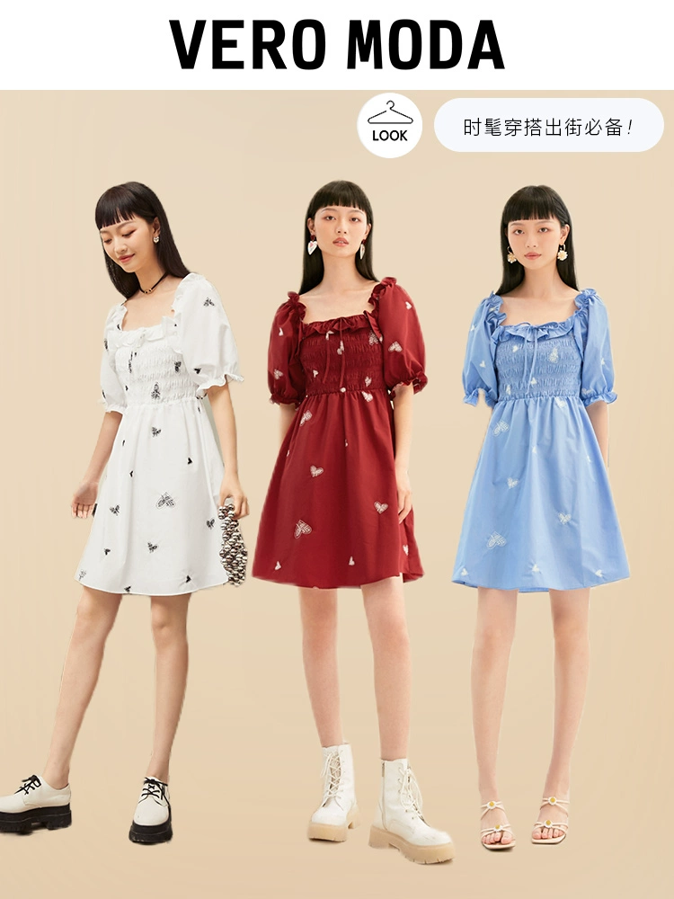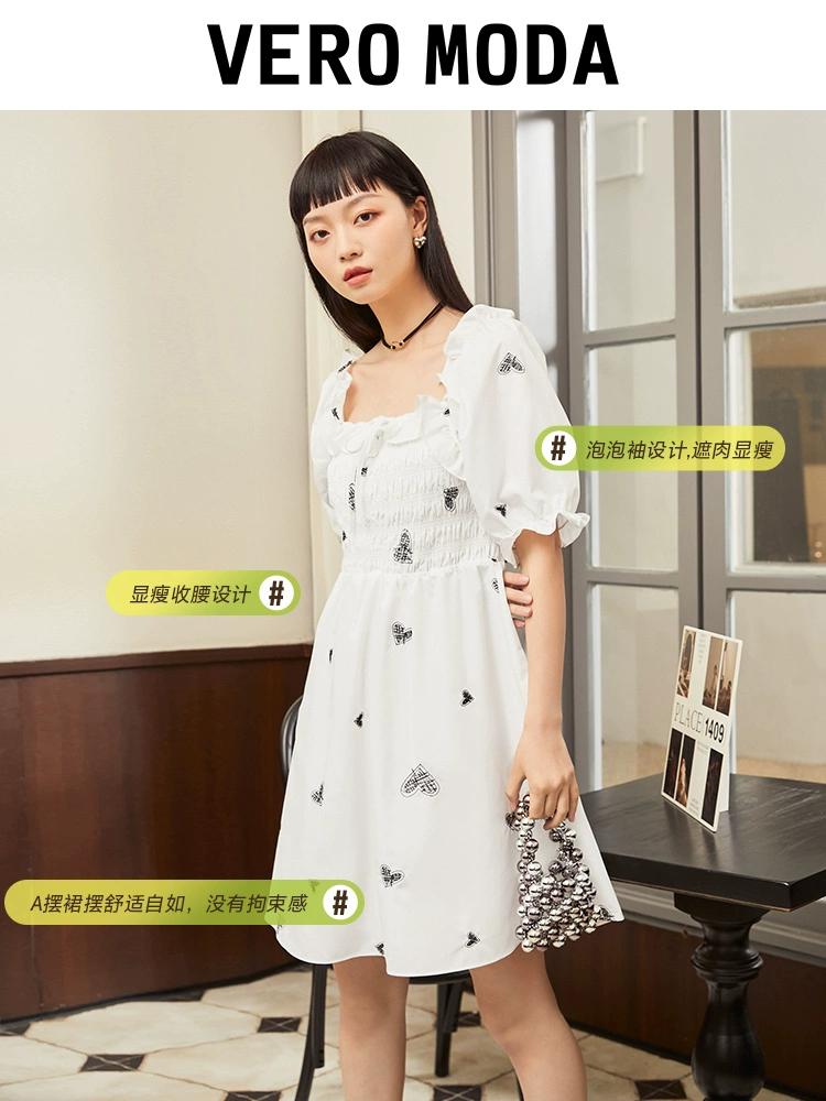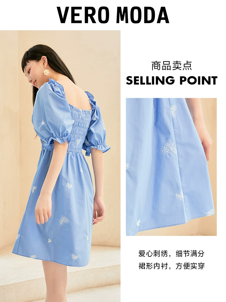 Vero Moda Outlet Summer Clearance Fashion Puff Sleeve Three-dimensional Love Embroidery Wooden Ear Trim Dress